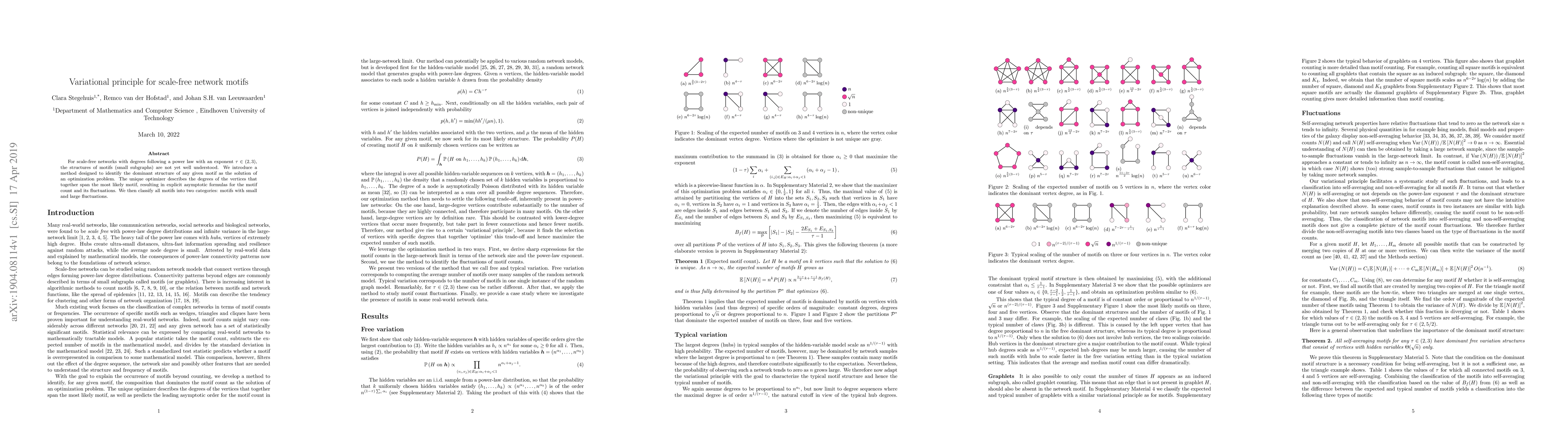 For scale-free networks with degrees following a power law with an exponent $\tau\in(2,3)$, the structures of motifs (small subgraphs) are not yet well understood. We introduce a method designed to identify the dominant structure of any given motif as the solution of an optimization problem. The unique optimizer describes the degrees of the vertices that together span the most likely motif, resulting in explicit asymptotic formulas for the motif count and its fluctuations. We then classify all motifs into two categories: motifs with small and large fluctuations.