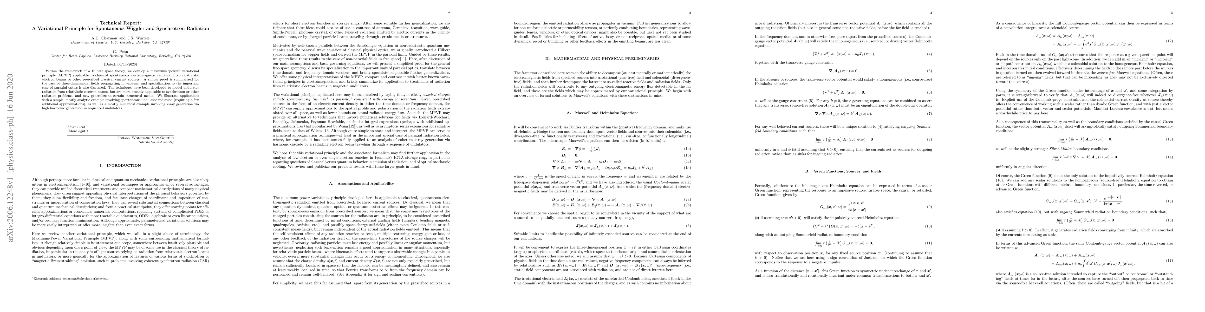 Within the framework of a Hilbert space theory, we develop a maximum-``power'' variational principle (MPVP) applicable to classical spontaneous electromagnetic radiation from relativistic electron beams or other prescribed classical current sources. A simple proof is summarized for the case of three-dimensional fields propagating in vacuum, and specialization to the important case of paraxial optics is also discussed. The techniques have been developed to model undulator radiation from relativistic electron beams, but are more broadly applicable to synchrotron or other radiation problems, and may generalize to certain structured media. We illustrate applications with a simple, mostly analytic example involving spontaneous undulator radiation (requiring a few additional approximations), as well as a mostly numerical example involving x-ray generation via high harmonic generation in sequenced undulators