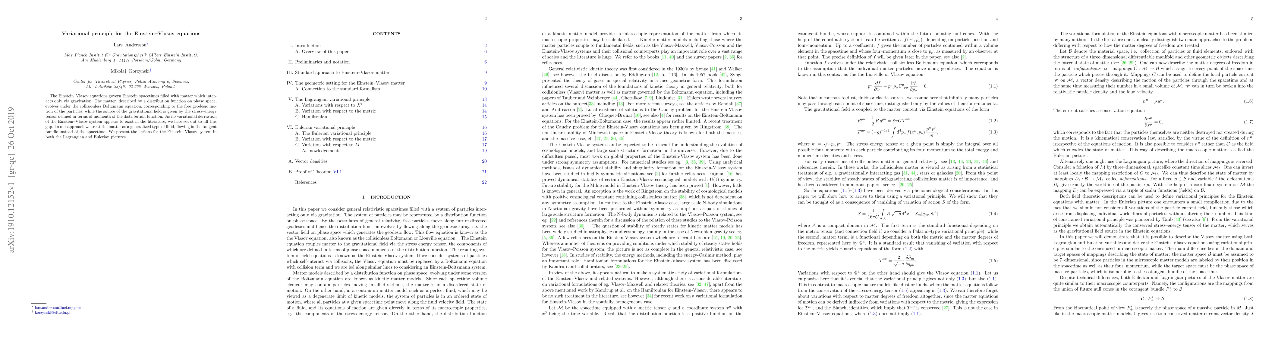 The introduction of a variational principle for the Einstein-Vlasov system, providing actions in Lagrangian and Eulerian pictures, and linking the distribution function to a particle current vector field.