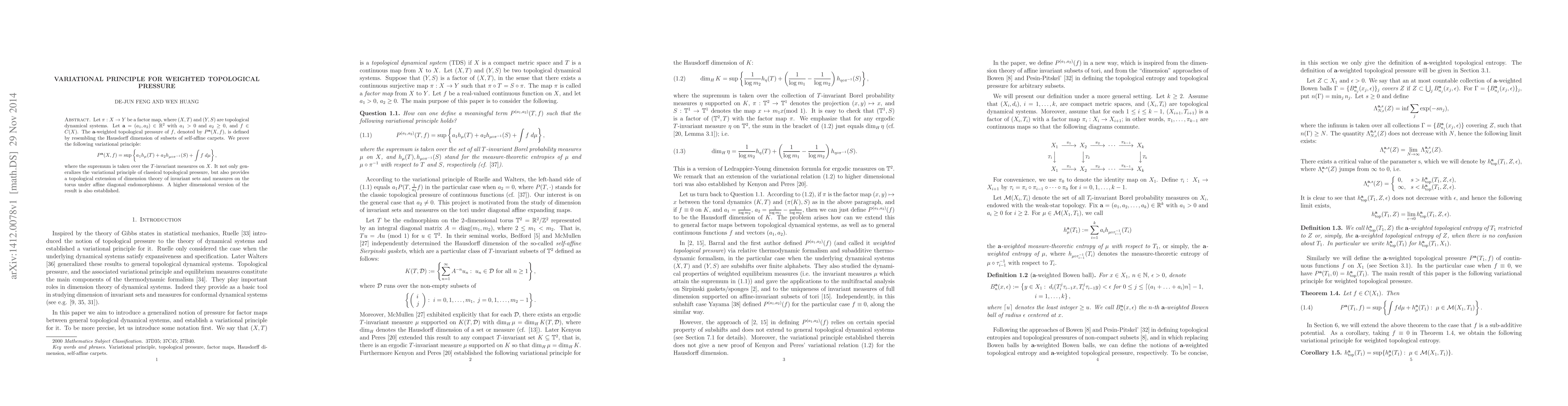 Let $\pi:X\to Y$ be a factor map, where $(X,T)$ and $(Y,S)$ are topological dynamical systems. Let ${\bf a}=(a_1,a_2)\in {\Bbb R}^2$ with $a_1>0$ and $a_2\geq 0$, and $f\in C(X)$. The ${\bf a}$-weighted topological pressure of $f$, denoted by $P^{\bf a}(X, f)$, is defined by resembling the Hausdorff dimension of subsets of self-affine carpets. We prove the following variational principle: $$ P^{\bf a}(X, f)=\sup\left\{a_1h_\mu(T)+a_2h_{\mu\circ\pi^{-1}}(S)+\int f \;d\mu\right\}, $$ where the supremum is taken over the $T$-invariant measures on $X$. It not only generalizes the variational principle of classical topological pressure, but also provides a topological extension of dimension theory of invariant sets and measures on the torus under affine diagonal endomorphisms. A higher dimensional version of the result is also established.