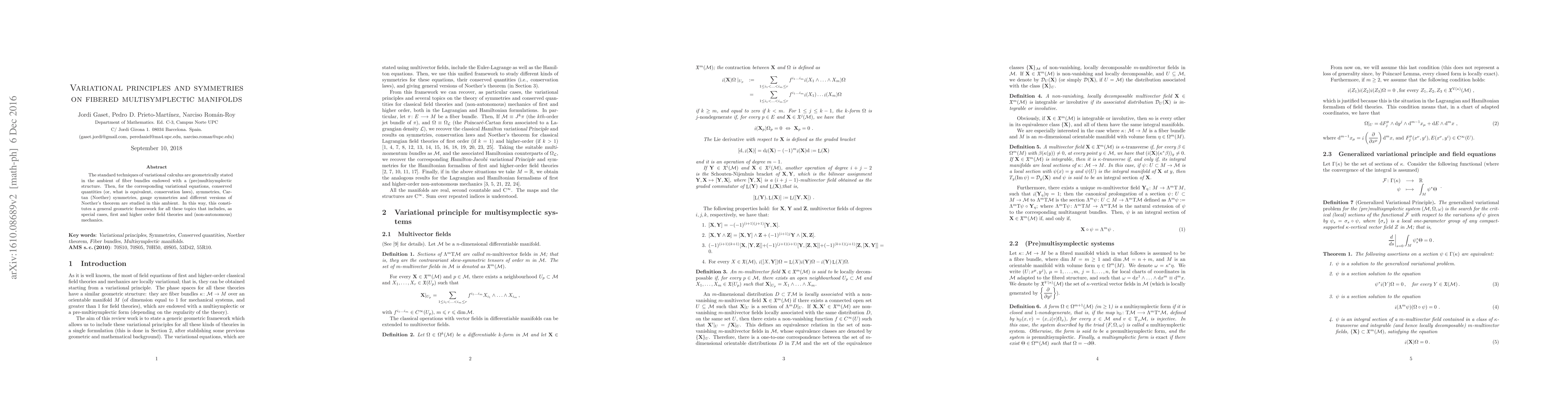 This paper presents a geometric framework for variational calculus using fiber bundles with (pre)multisymplectic structures, studying conserved quantities, symmetries, and Noether's theorems within this setup to encompass both field theories and mechanics.