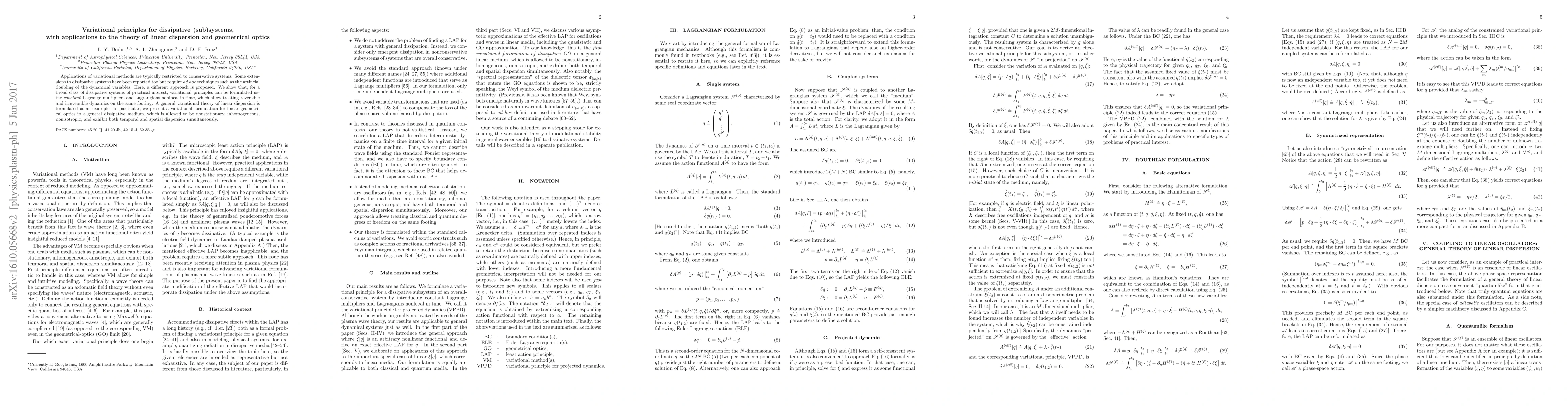 This paper proposes a novel variational approach for dissipative systems, extending beyond conservative systems, using constant Lagrange multipliers and nonlocal Lagrangians. It applies this method to formulate a general theory of linear dispersion and presents a variational formulation for linear geometrical optics in a general dissipative medium.