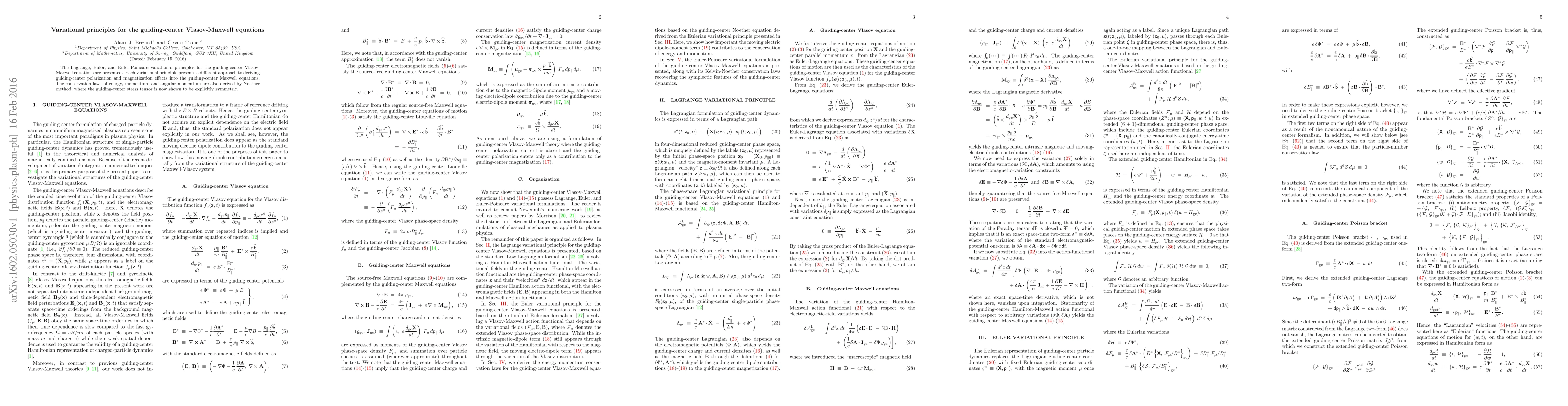 This paper presents variational principles for guiding-center Vlasov-Maxwell equations, deriving guiding-center polarization and magnetization effects and using the Noether method to establish conservation laws for energy, momentum, and angular momentum, showing an explicitly symmetric guiding-center stress tensor.