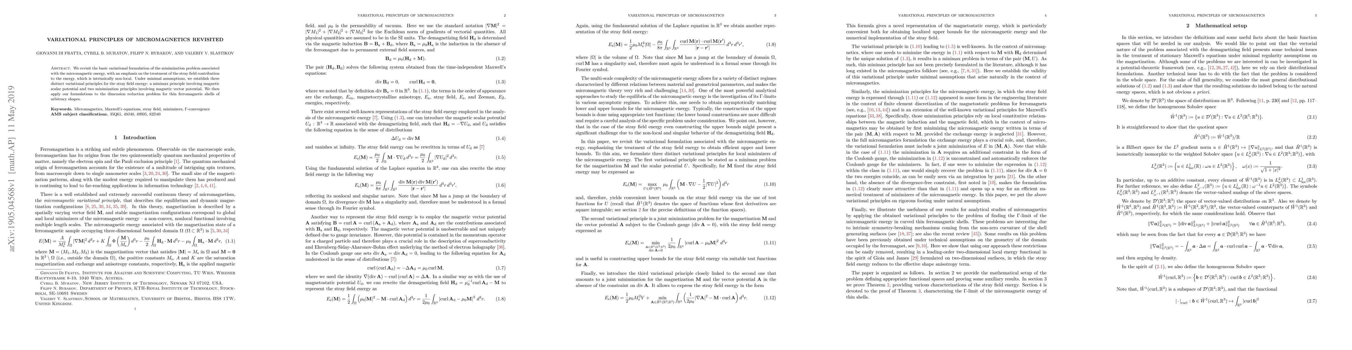 This paper revisits the variational principles of micromagnetics, focusing on the non-local stray field energy. It establishes three distinct variational principles and applies them to the dimension reduction of thin ferromagnetic shells.