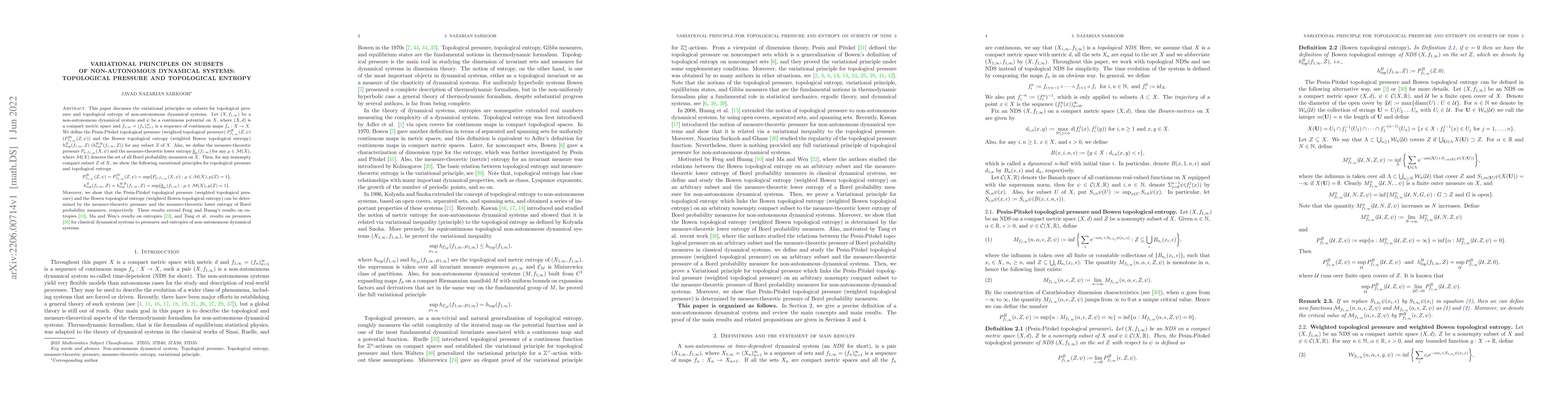 This paper explores variational principles for topological pressure and entropy on subsets of non-autonomous dynamical systems, defining new measures and proving that these new measures correspond to the measure-theoretic pressure and entropy of Borel probability measures. It extends previous results on classical dynamical systems to non-autonomous systems.
