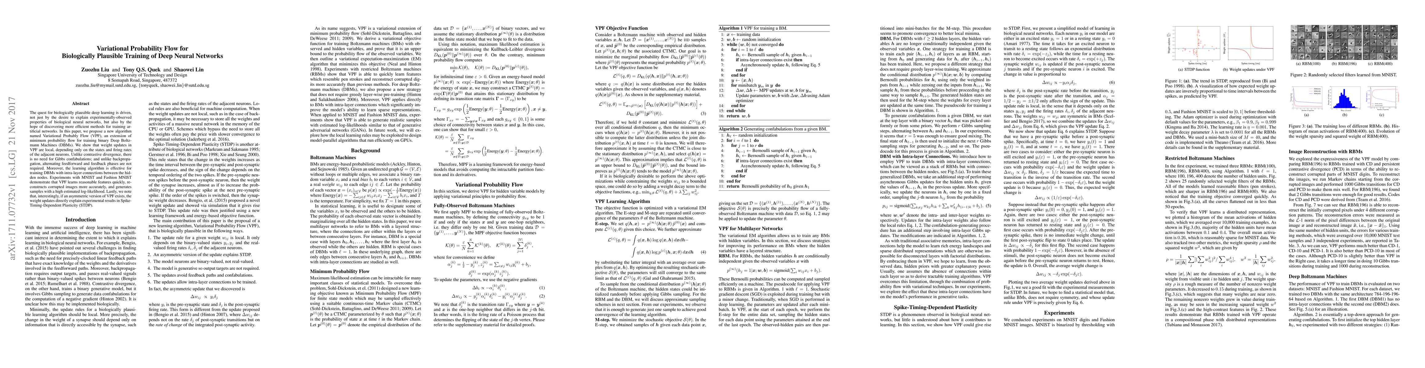 A new algorithm called Variational Probably Flow (VPF) is proposed for training deep neural networks in a biologically plausible way, allowing for efficient and effective learning of features and patterns.