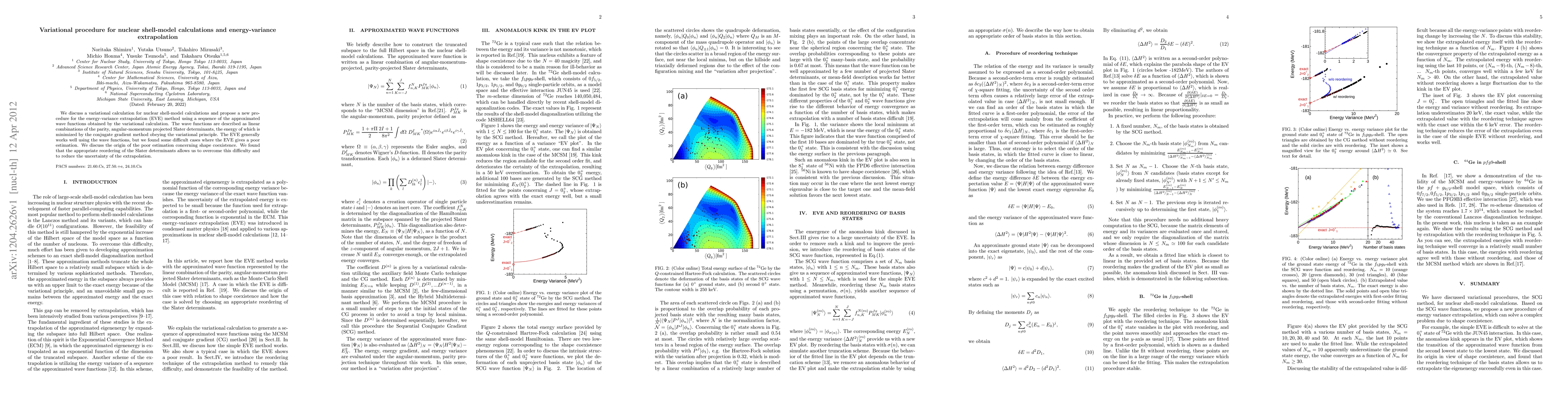 This paper presents a variational method for nuclear shell-model calculations and proposes an improved energy-variance extrapolation (EVE) technique using variational-derived wave functions. The authors identify issues with EVE in cases of shape coexistence and suggest reordering Slater determinants to enhance the accuracy of the extrapolation.