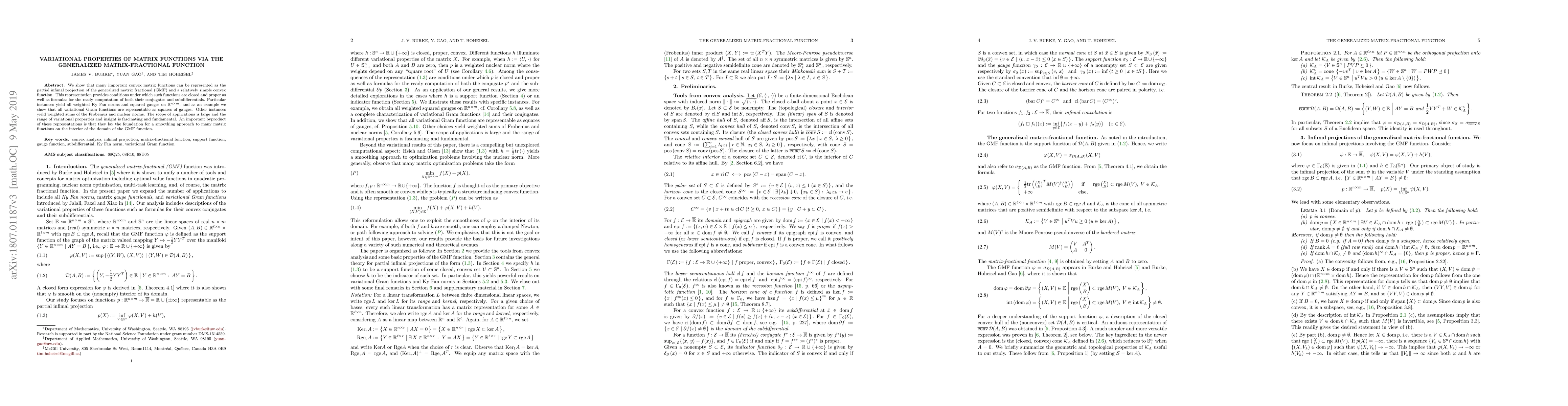 We show that many important convex matrix functions can be represented as the partial infimal projection of the generalized matrix fractional (GMF) and a relatively simple convex function. This representation provides conditions under which such functions are closed and proper as well as formulas for the ready computation of both their conjugates and subdifferentials. Special attention is given to support and indicator functions. Particular instances yield all weighted Ky Fan norms and squared gauges on $\mathbb R^{n\times m}$, and as an example we show that all variational Gram functions are representable as squares of gauges. Other instances yield weighted sums of the Frobenius and nuclear norms. The scope of applications is large and the range of variational properties and insight is fascinating and fundamental. An important byproduct of these representations is that they lay the foundation for a smoothing approach to many matrix functions on the interior of the domain of the GMF function, which opens the door to a range of unexplored optimization methods.
