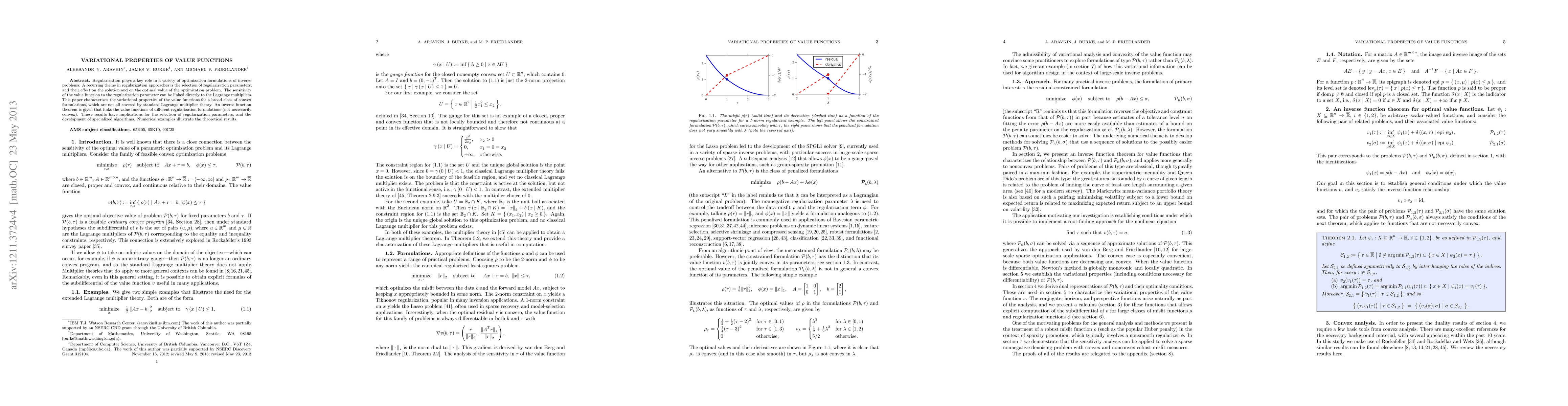 Regularization plays a key role in a variety of optimization formulations of inverse problems. A recurring theme in regularization approaches is the selection of regularization parameters, and their effect on the solution and on the optimal value of the optimization problem. The sensitivity of the value function to the regularization parameter can be linked directly to the Lagrange multipliers. This paper characterizes the variational properties of the value functions for a broad class of convex formulations, which are not all covered by standard Lagrange multiplier theory. An inverse function theorem is given that links the value functions of different regularization formulations (not necessarily convex). These results have implications for the selection of regularization parameters, and the development of specialized algorithms. Numerical examples illustrate the theoretical results.