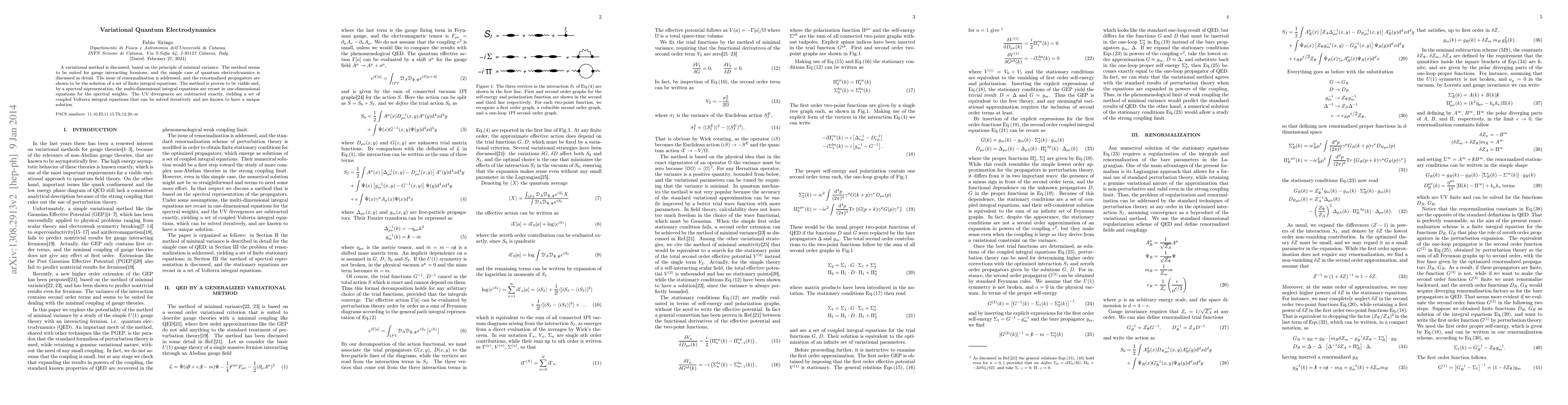 A variational method is discussed, based on the principle of minimal variance. The method seems to be suited for gauge interacting fermions, and the simple case of quantum electrodynamics is discussed in detail. The issue of renormalization is addressed, and the renormalized propagators are shown to be the solution of a set of finite integral equations. The method is proven to be viable and, by a spectral representation, the multi-dimensional integral equations are recast in one-dimensional equations for the spectral weights. The UV divergences are subtracted exactly, yielding a set of coupled Volterra integral equations that can be solved iteratively, and are known to have a unique solution.