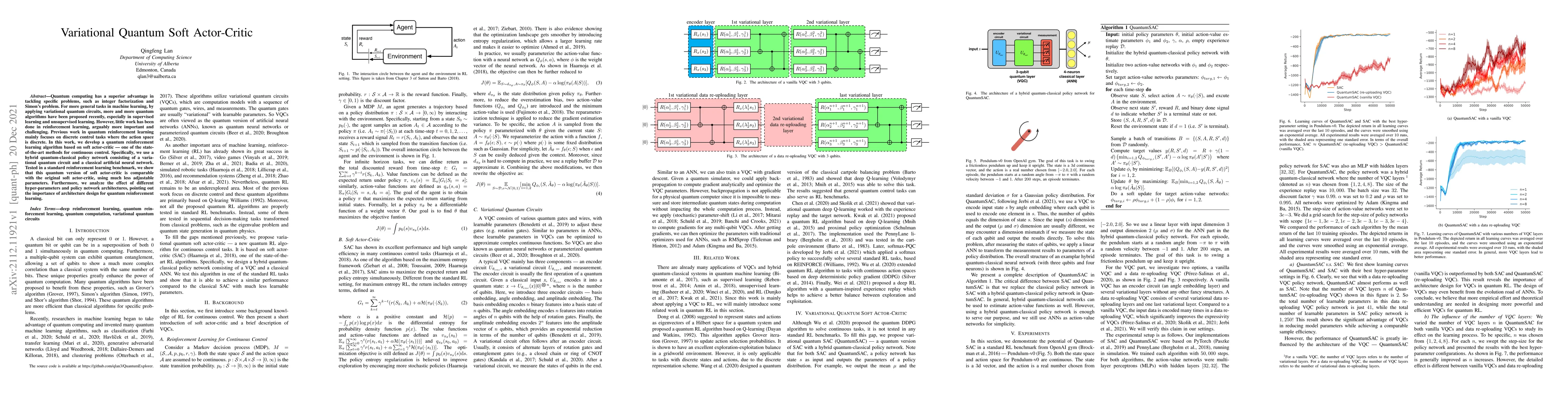 The paper introduces a quantum reinforcement learning algorithm based on the soft actor-critic method for continuous control tasks, utilizing a hybrid quantum-classical policy network. The developed quantum version performs comparably to its classical counterpart while requiring fewer parameters, highlighting the significance of architecture design in quantum reinforcement learning.