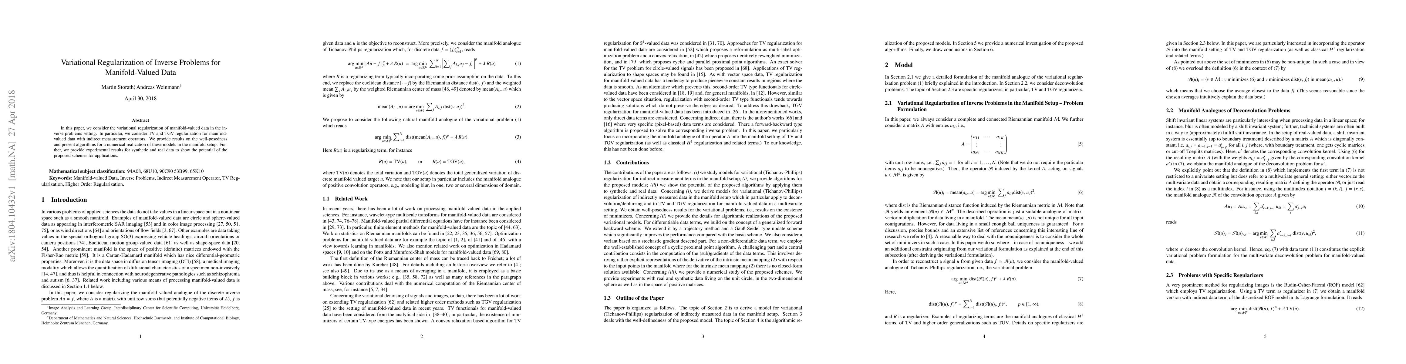 This paper explores variational regularization techniques, specifically TV and TGV, for inverse problems involving manifold-valued data, presenting algorithms for their numerical implementation and demonstrating their effectiveness through synthetic and real data experiments.