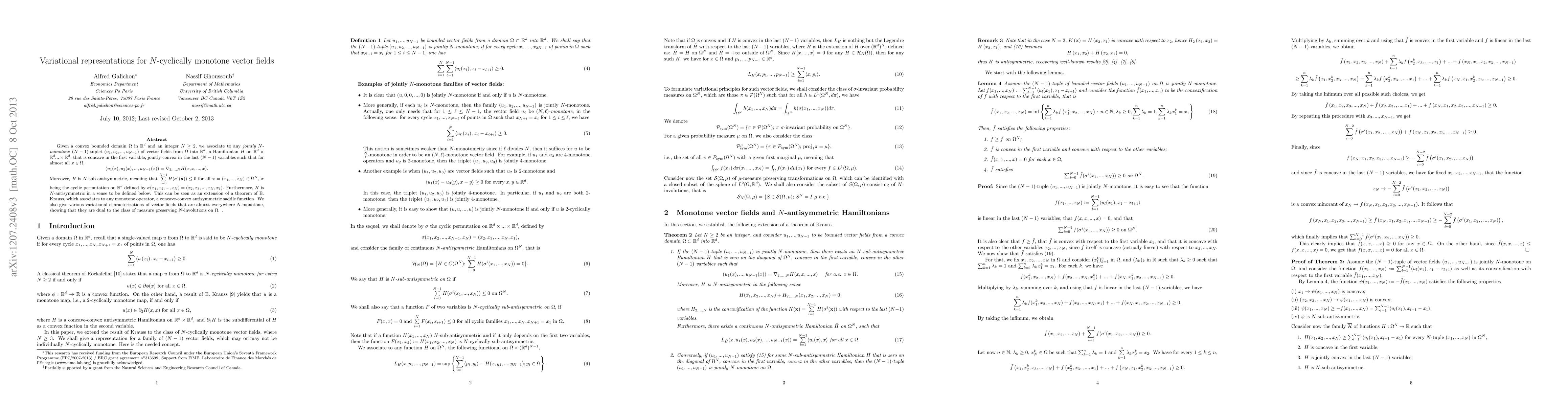 This paper introduces a method to associate a Hamiltonian function to any set of N-cyclically monotone vector fields within a convex bounded domain in (mathbb{R}^d). The Hamiltonian is concave in the first variable and jointly convex in the last (N-1) variables, while also being N-sub-antisymmetric and N-antisymmetric as defined. The research extends a theorem by E. Krauss and provides variational characterizations for vector fields that are almost everywhere N-monotone, linking them to measure-preserving N-involutions on the domain.