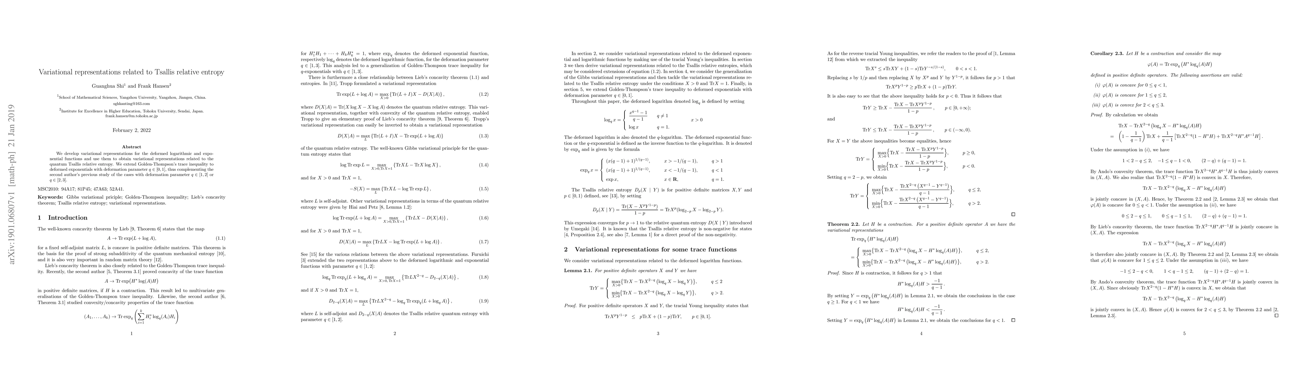 We develop variational representations for the deformed logarithmic and exponential functions and use them to obtain variational representations related to the quantum Tsallis relative entropy. We extend Golden-Thompson's trace inequality to deformed exponentials with deformation parameter $ q\in[0,1], $ thus complementing the second author's previous study of the cases with deformation parameter $ q \in [1,2] $ or $ q \in [2,3]. $