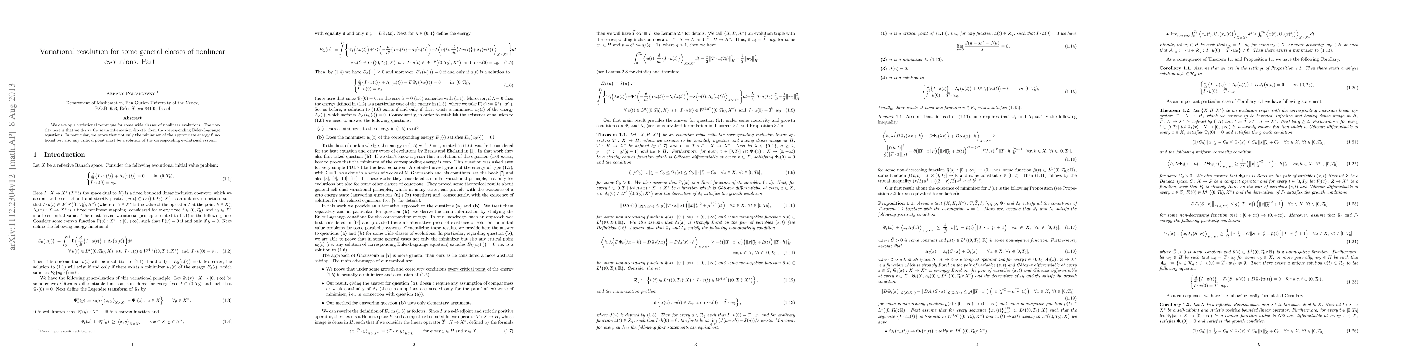 This paper introduces a variational method to solve general classes of nonlinear evolutions, deriving key information directly from Euler-Lagrange equations. It proves that both the minimizer of the energy functional and any critical point are solutions to the evolutional system.