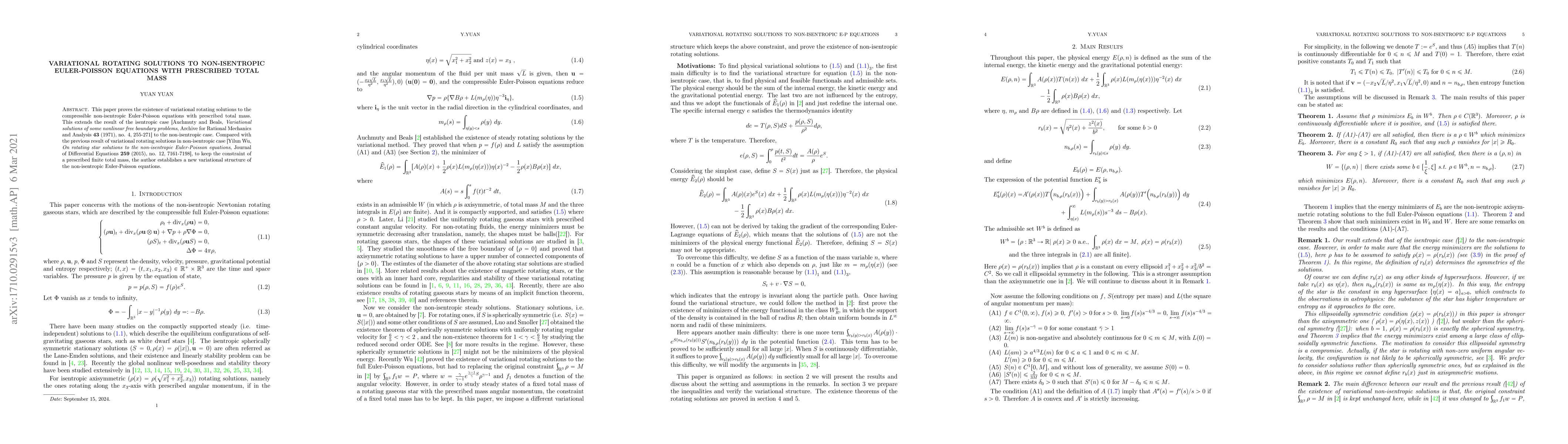 This paper proves the existence of variational rotating solutions to the compressible non-isentropic Euler-Poisson equations with prescribed total mass. This extends the result of the isentropic case [Auchmuty and Beals, Arch. Ration. Mech. Anal., 1971] to the non-isentropic case. Compared with the previous result of variational rotating solutions in non-isentropic case [Wu, Journal of Differential Equations, 2015], to keep the constraint of a prescribed finite total mass, the author establishes a new variational structure the non-isentropic Euler-Poisson equations.