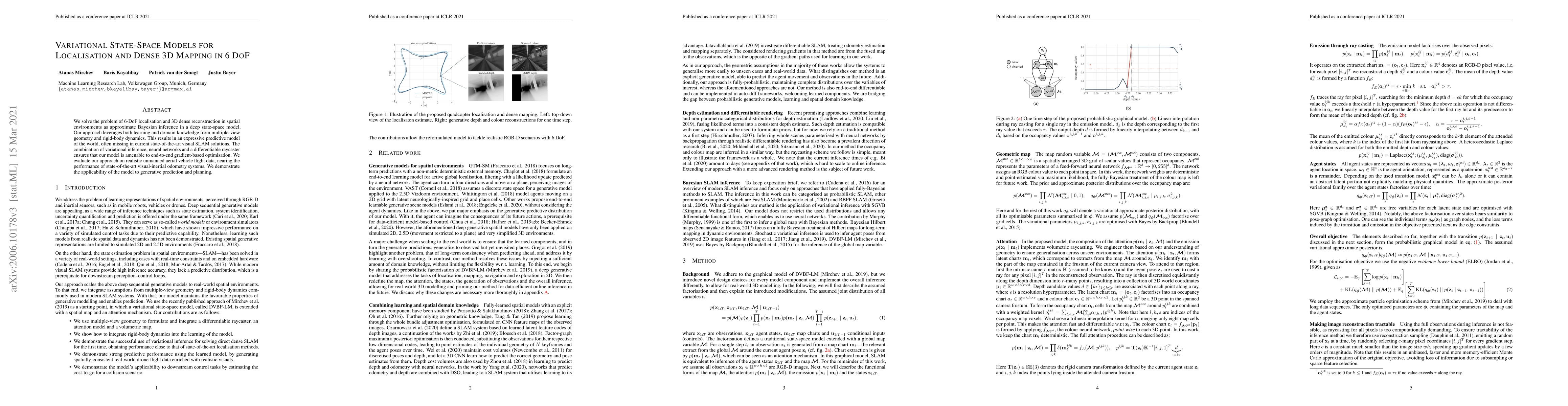 Researchers developed a deep state-space model for 6-DoF localisation and dense 3D mapping in spatial environments, achieving performance comparable to state-of-the-art visual-inertial odometry systems.