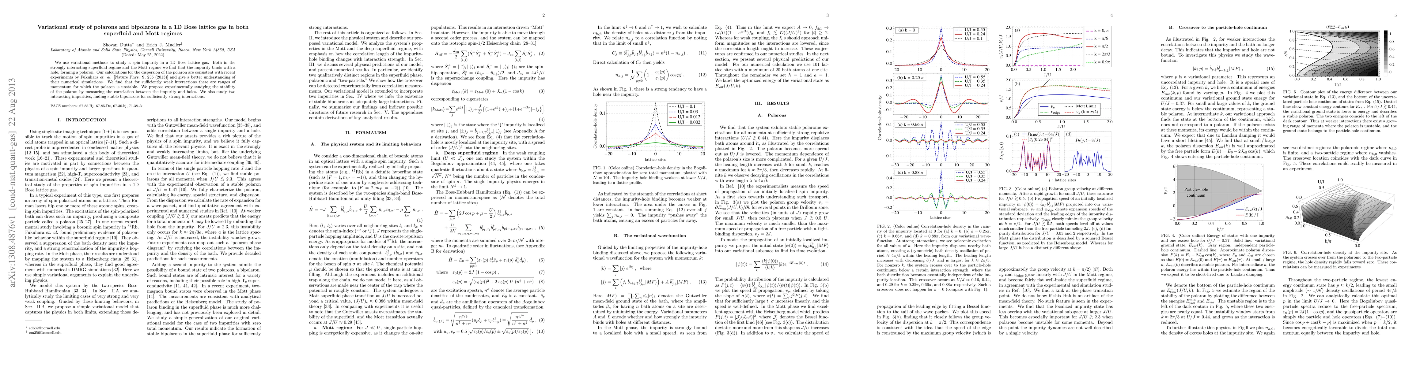 This paper uses variational methods to investigate polarons and bipolarons in a 1D Bose lattice gas, showing that a spin impurity forms a polaron in both superfluid and Mott regimes. The study proposes experimental methods to test polaron stability and finds stable bipolarons under strong interactions.