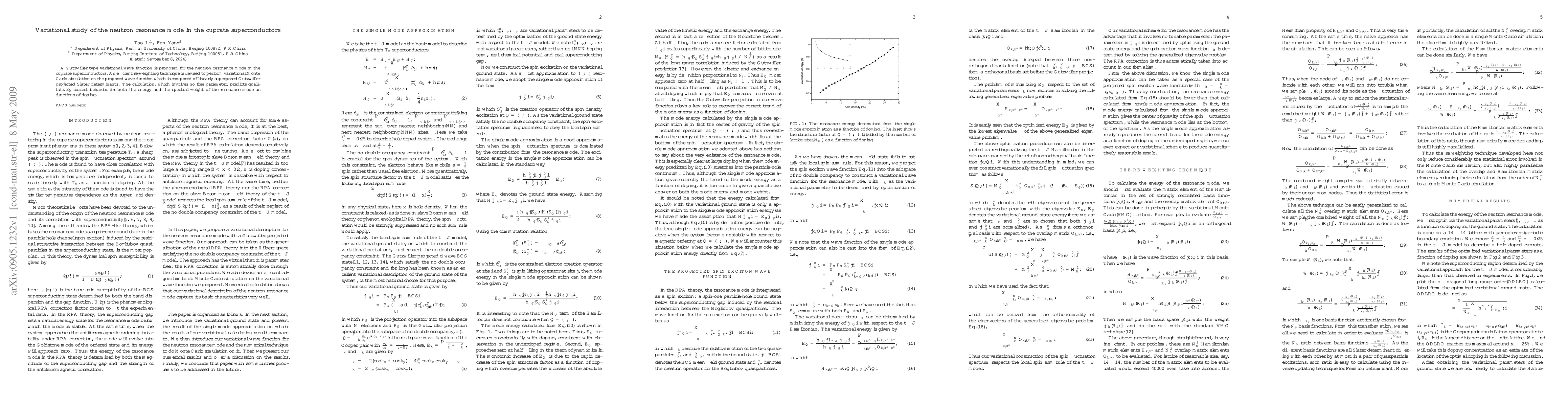 This paper proposes a Gutzwiller-type variational wave function for studying the neutron resonance mode in cuprate superconductors, employing a re-weighting technique for variational Monte Carlo simulations. The method predicts the correct qualitative behavior of the resonance mode's energy and spectral weight with doping, without requiring any free parameters.