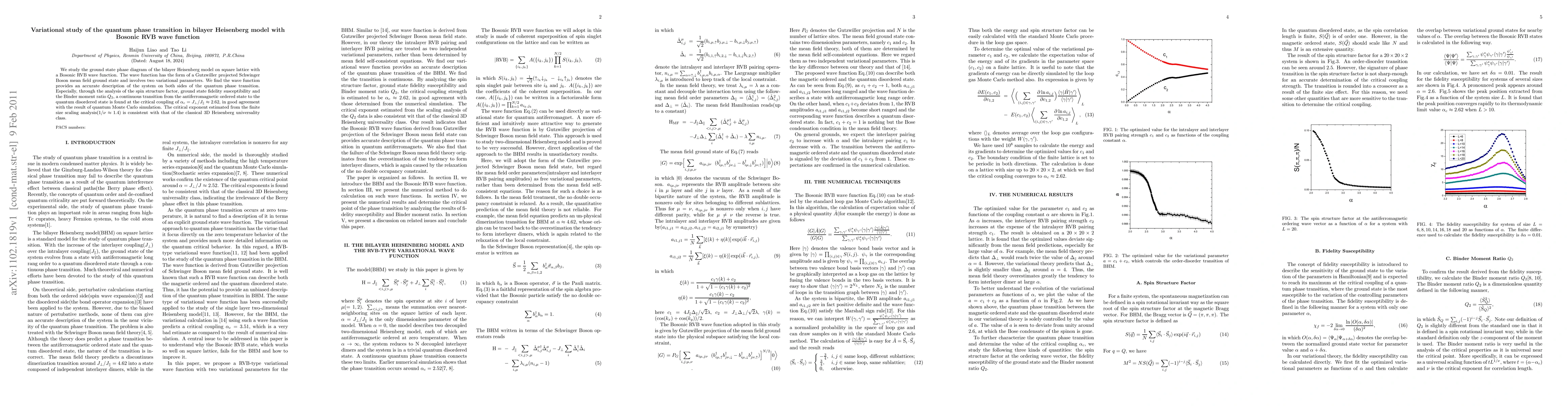 This paper investigates the ground state phase diagram of a bilayer Heisenberg model on a square lattice using a Bosonic RVB wave function, revealing a continuous quantum phase transition at $\alpha_{c}\approx2.62$. The study confirms the transition's consistency with the classical 3D Heisenberg universality class via finite size scaling analysis.