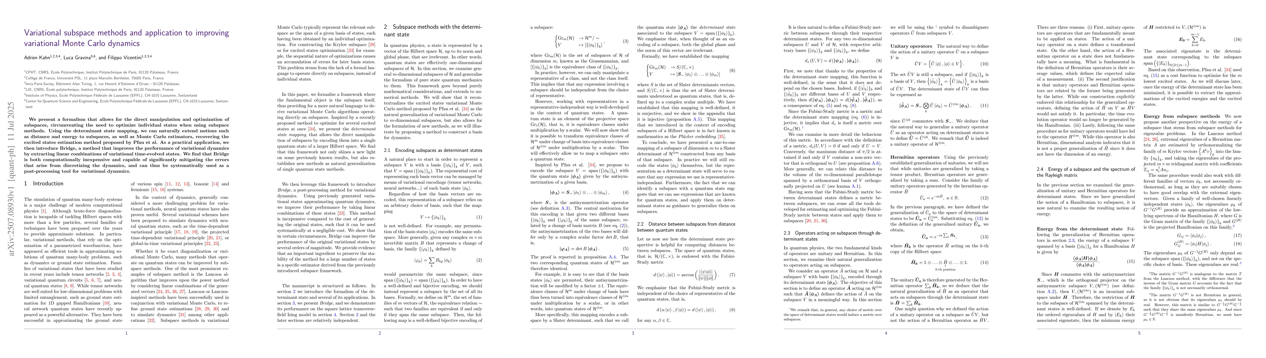 We present a formalism that allows for the direct manipulation and optimization of subspaces, circumventing the need to optimize individual states when using subspace methods. Using the determinant state mapping, we can naturally extend notions such as distance and energy to subspaces, as well as Monte Carlo estimators, recovering the excited states estimation method proposed by Pfau et al. As a practical application, we then introduce Bridge, a method that improves the performance of variational dynamics by extracting linear combinations of variational time-evolved states. We find that Bridge is both computationally inexpensive and capable of significantly mitigating the errors that arise from discretizing the dynamics, and can thus be systematically used as a post-processing tool for variational dynamics.