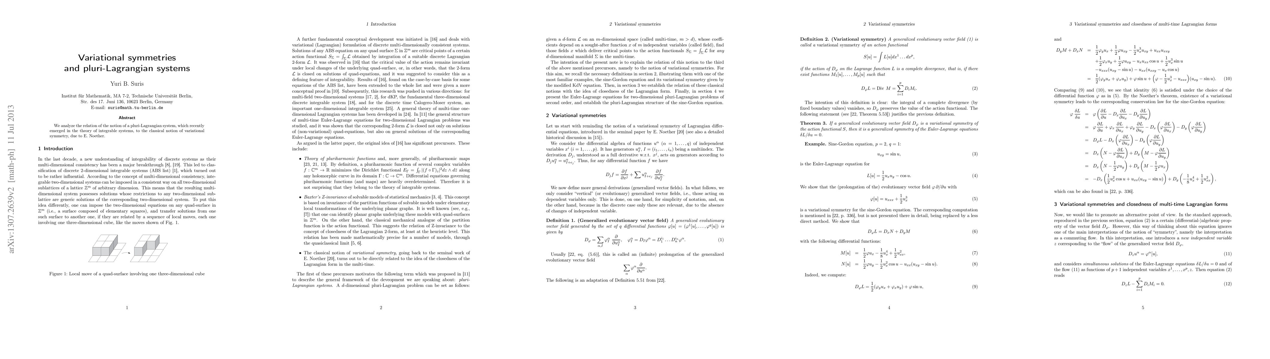 Summary: This paper explores the connection between pluri-Lagrangian systems, a recent development in the theory of integrable systems, and classical variational symmetries, as established by Emmy Noether, to deepen the understanding of their mutual implications.