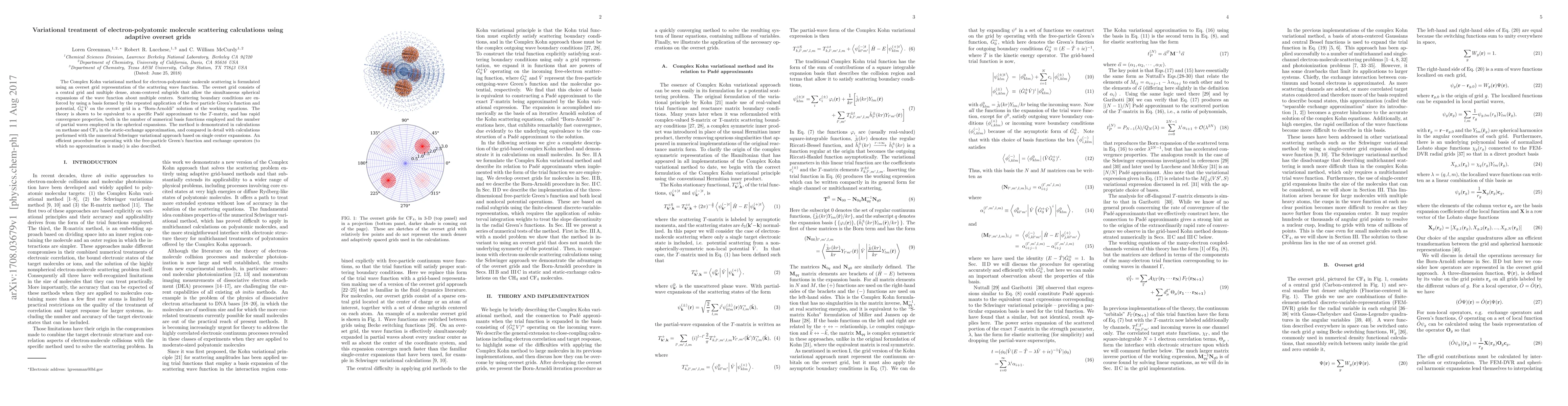 This paper presents a variational method for electron-polyatomic molecule scattering using adaptive overset grids, showing rapid convergence and equivalence to a specific Padé approximant to the T-matrix. The method is demonstrated on methane and CF$_4$ and compared with the numerical Schwinger variational approach.
