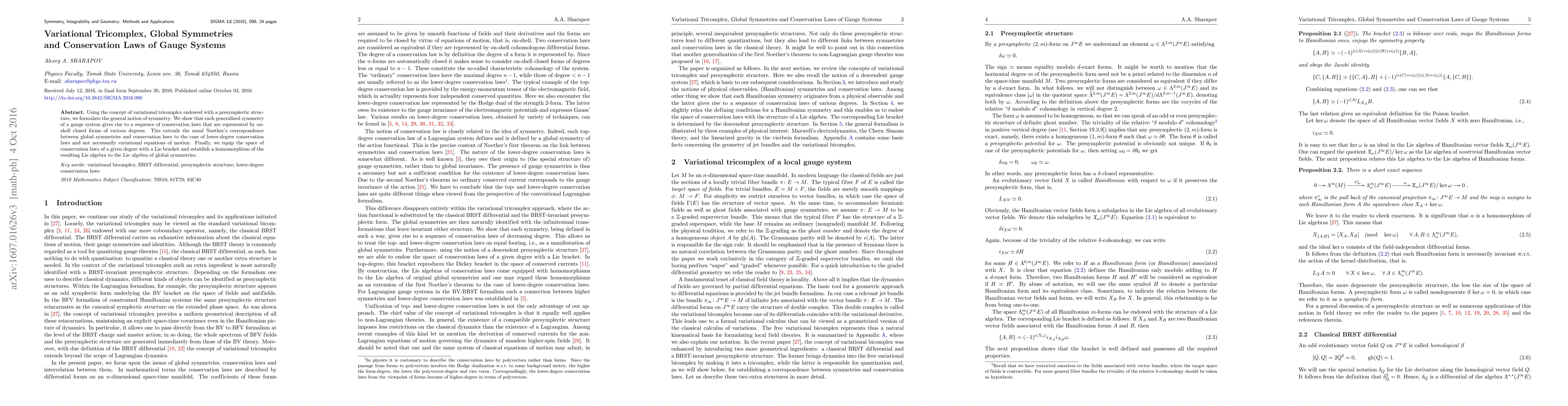 This paper introduces a variational tricomplex framework to generalize the concept of symmetry in gauge systems, demonstrating that each symmetry leads to a sequence of conservation laws represented by on-shell closed forms. It extends Noether's theorem to include lower-degree conservation laws and establishes a Lie algebra structure for these conservation laws.