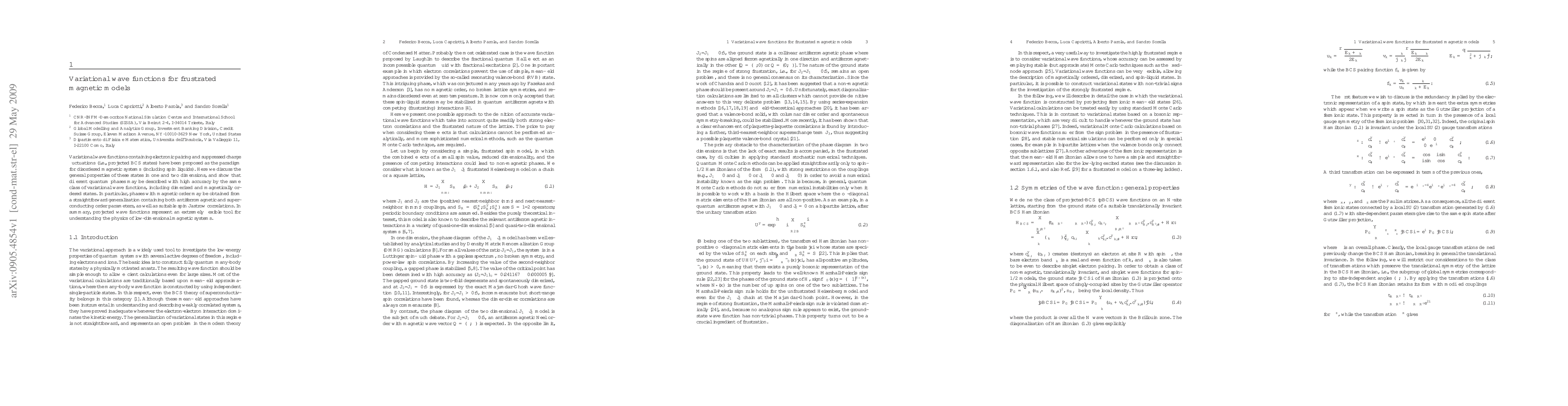 This paper proposes variational wave functions based on projected BCS states to accurately describe various quantum phases in frustrated magnetic systems, including dimerized and magnetically ordered states. The study highlights the flexibility of these wave functions in capturing different quantum phases in one and two dimensions.
