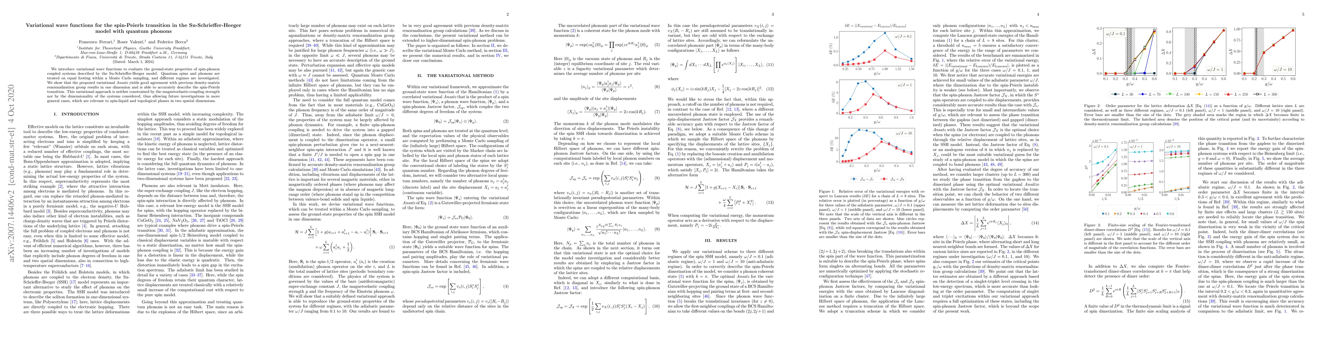 We introduce variational wave functions to evaluate the ground-state properties of spin-phonon coupled systems described by the Su-Schrieffer-Heeger model. Quantum spins and phonons are treated on equal footing within a Monte Carlo sampling, and different regimes are investigated. We show that the proposed variational Ansatz yields good agreement with previous density-matrix renormalization group results in one dimension and is able to accurately describe the spin-Peierls transition. This variational approach is neither constrained by the magnetoelastic-coupling strength nor by the dimensionality of the systems considered, thus allowing future investigations in more general cases, which are relevant to spin-liquid and topological phases in two spatial dimensions.