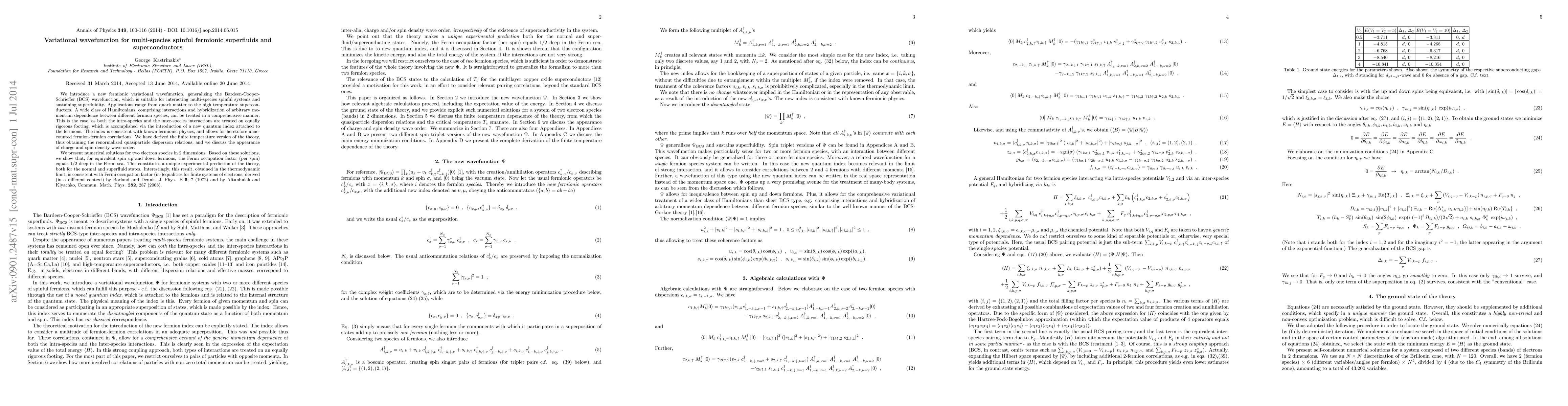 We introduce a new fermionic variational wavefunction, generalizing the Bardeen-Cooper-Schrieffer (BCS) wavefunction, which is suitable for interacting multi-species spinful systems and sustaining superfluidity. Applications range from quark matter to the high temperature superconductors. A wide class of Hamiltonians, comprising interactions and hybridization of arbitrary momentum dependence between different fermion species, can be treated in a comprehensive manner. This is the case, as both the intra-species and the inter-species interactions are treated on equally rigorous footing, which is accomplished via the introduction of a new quantum index attached to the fermions. The index is consistent with known fermionic physics, and allows for heretofore unaccounted for fermion-fermion correlations. We have derived the finite temperature version of the theory, thus obtaining the renormalized quasiparticle dispersion relations, and we discuss the appearance of charge and spin density wave order. We present numerical solutions for two electron species in 2 dimensions. Based on these solutions, we show that, for equivalent spin up and down fermions, the Fermi occupation factor (per spin) equals 1/2 deep in the Fermi sea. This constitutes a unique experimental prediction of the theory, both for the normal and superfluid states. Interestingly, this result, obtained in the thermodynamic limit, is consistent with Fermi occupation factor (in-)equalities for finite systems of electrons, derived (in a different context) by Borland and Dennis, J. Phys. B {\bf 5}, 7 (1972) and by Altunbulak and Klyachko, Commun. Math. Phys. {\bf 282}, 287 (2008).