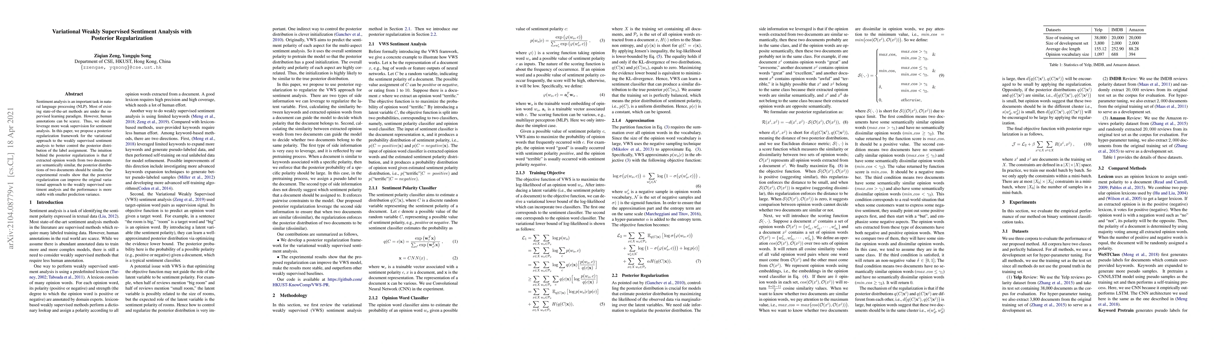 This paper proposes a posterior regularization framework for variational weakly supervised sentiment analysis, aiming to improve label assignment control by leveraging semantic similarity between opinion words. Experimental results demonstrate enhanced performance stability and reduced prediction variance.
