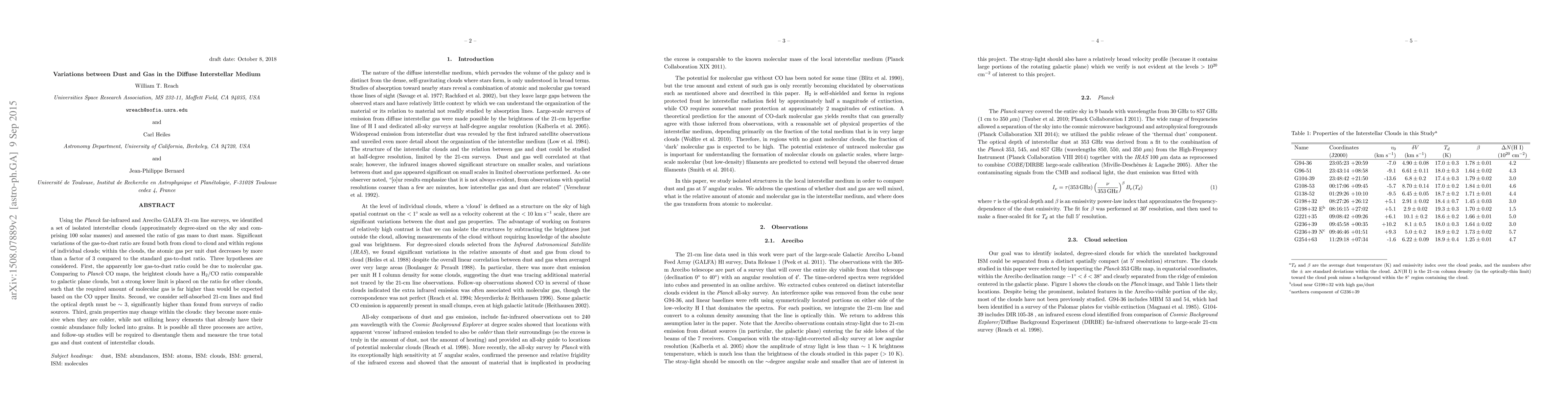 This paper investigates variations in the gas-to-dust ratio in isolated interstellar clouds using Planck and Arecibo data, finding significant discrepancies both between and within clouds. Three hypotheses are proposed to explain these variations: molecular gas presence, self-absorbed 21-cm lines, and changes in grain properties. Further studies are needed to determine the true gas and dust content.