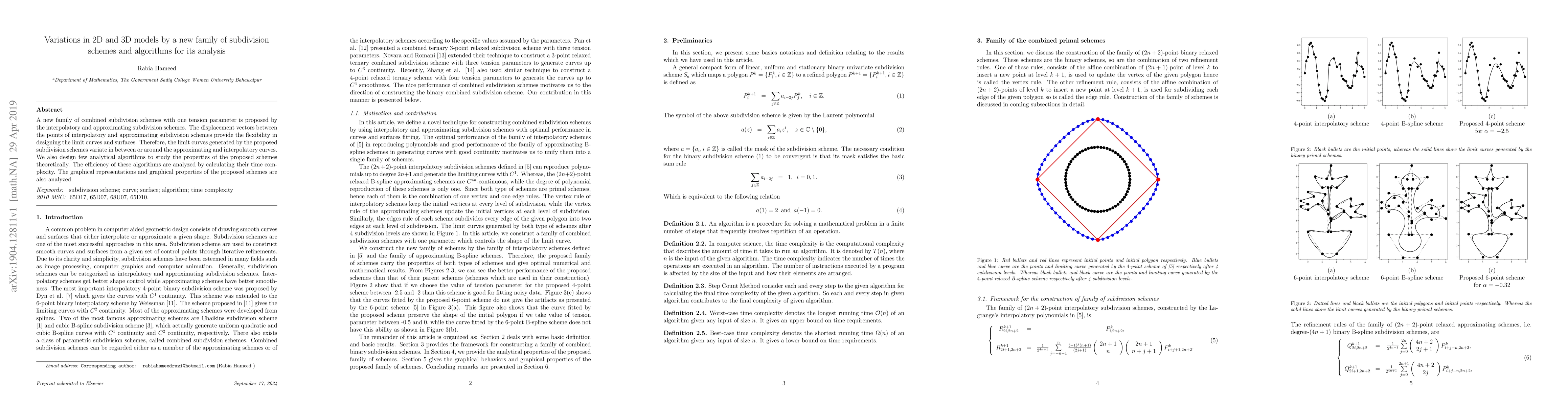 This paper introduces a new family of combined subdivision schemes with a tension parameter, offering flexibility in generating limit curves and surfaces between interpolatory and approximating schemes. Analytical algorithms are developed to study the properties and efficiency of these schemes, with a focus on their time complexity and graphical characteristics.
