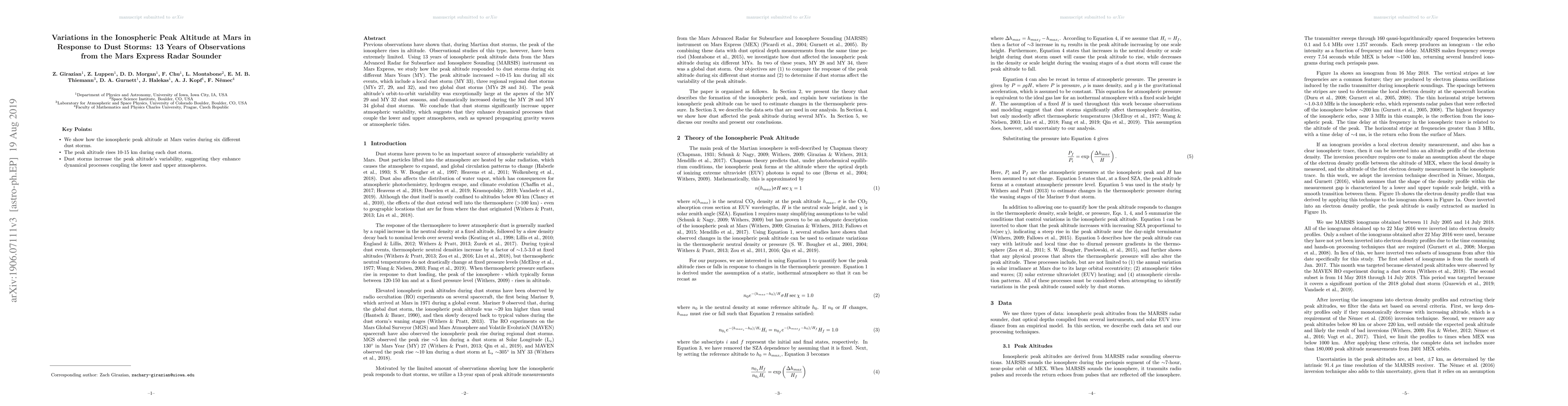 This study analyzes 13 years of Mars Express radar sounder data to show that Martian dust storms elevate the ionospheric peak altitude by approximately 10-15 km. The peak altitude's variability is notably higher during the apexes of dust seasons, indicating significant atmospheric coupling due to dust storms.