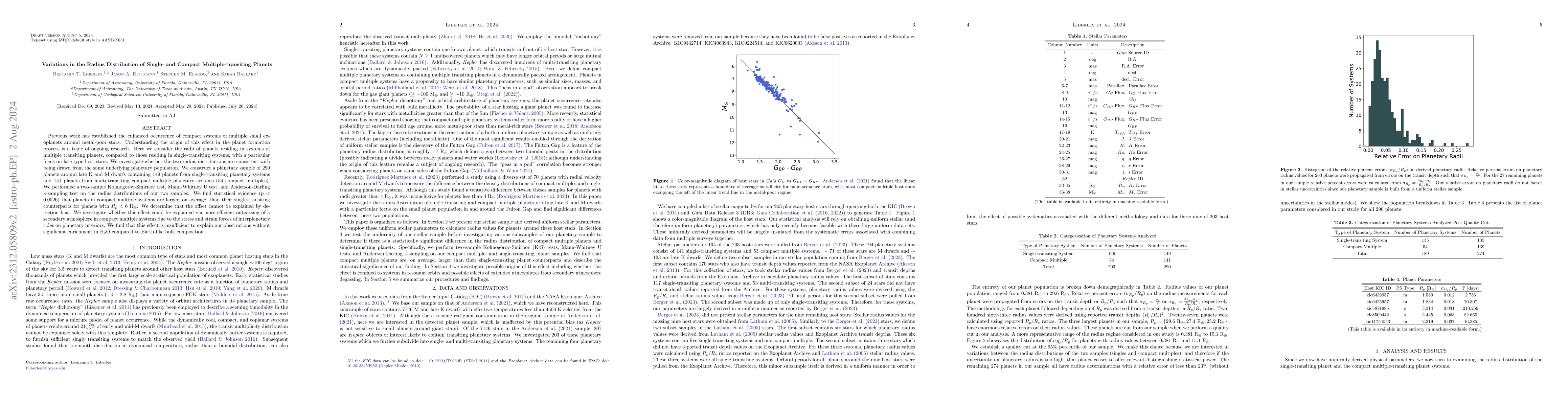 This study compares the radius distributions of planets in single-transiting systems versus those in compact multiple transiting systems around late-type stars, finding that planets in compact systems are larger on average. The observed difference is not due to detection bias and cannot be fully explained by hypothesized tidal outgassing effects.