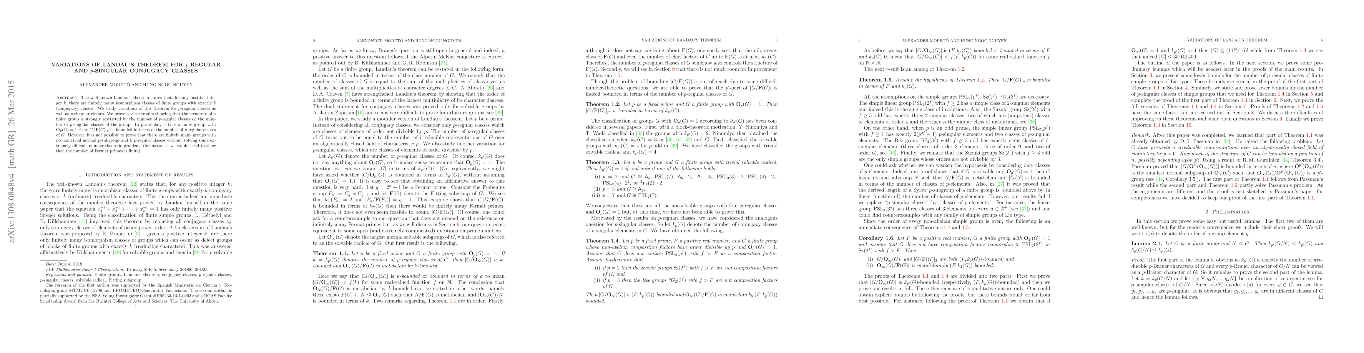 This paper explores variations of Landau's theorem concerning the number of $p$-regular and $p$-singular conjugacy classes in finite groups, demonstrating that the group structure is significantly constrained by these quantities. It reveals bounds on $|G/F(G)|_{p'}$ for groups with no nontrivial normal $p$-subgroup but acknowledges the intractability of proving finitely many such groups without resolving major number-theoretic challenges.