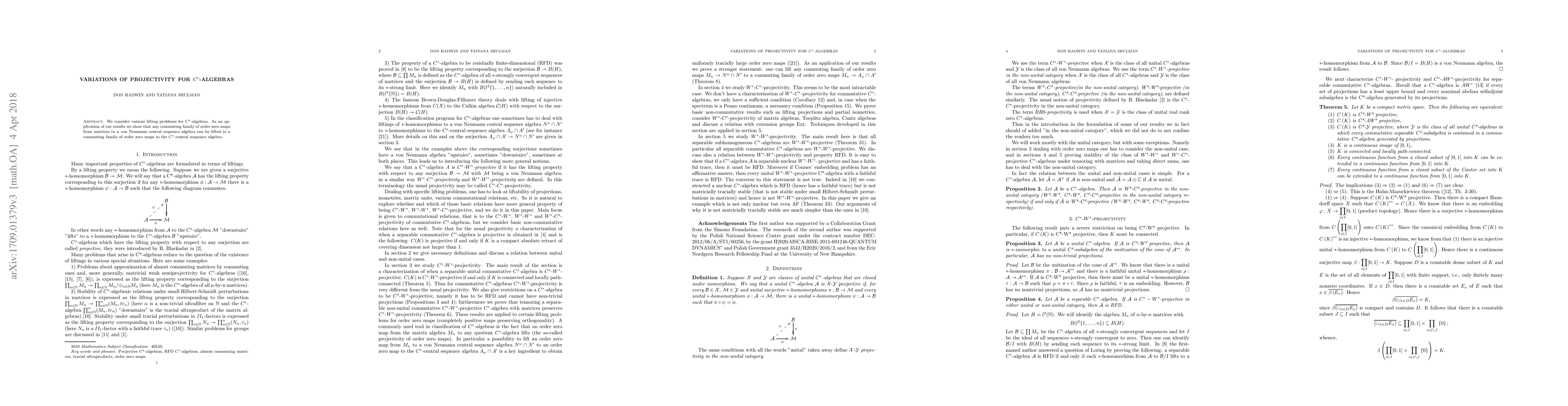 Researchers explored lifting problems for C*-algebras, finding that commuting families of order zero maps can be lifted from matrices to a specific C*-central sequence algebra.