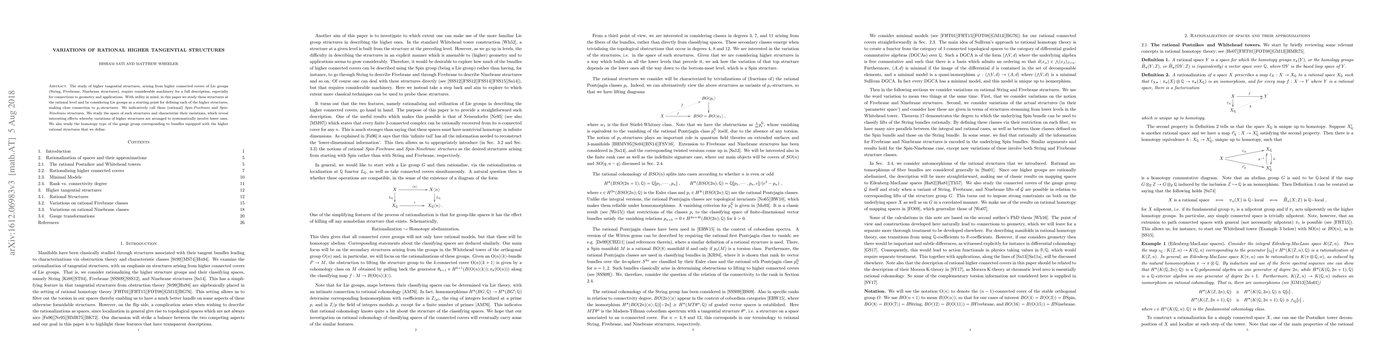 The study of higher tangential structures, arising from higher connected covers of Lie groups (String, Fivebrane, Ninebrane structures), require considerable machinery for a full description, especially for connections to geometry and applications. With utility in mind, in this paper we study these structures at the rational level and by considering Lie groups as a starting point for defining each of the higher structures, making close connection to $p_i$-structures. We indicatively call these (rational) Spin-Fivebrane and Spin-Ninebrane structures. We study the space of such structures and characterize their variations, which reveal interesting effects whereby variations of higher structures are arranged to systematically involve lower ones. We also study the homotopy type of the gauge group corresponding to bundles equipped with the higher rational structures that we define.