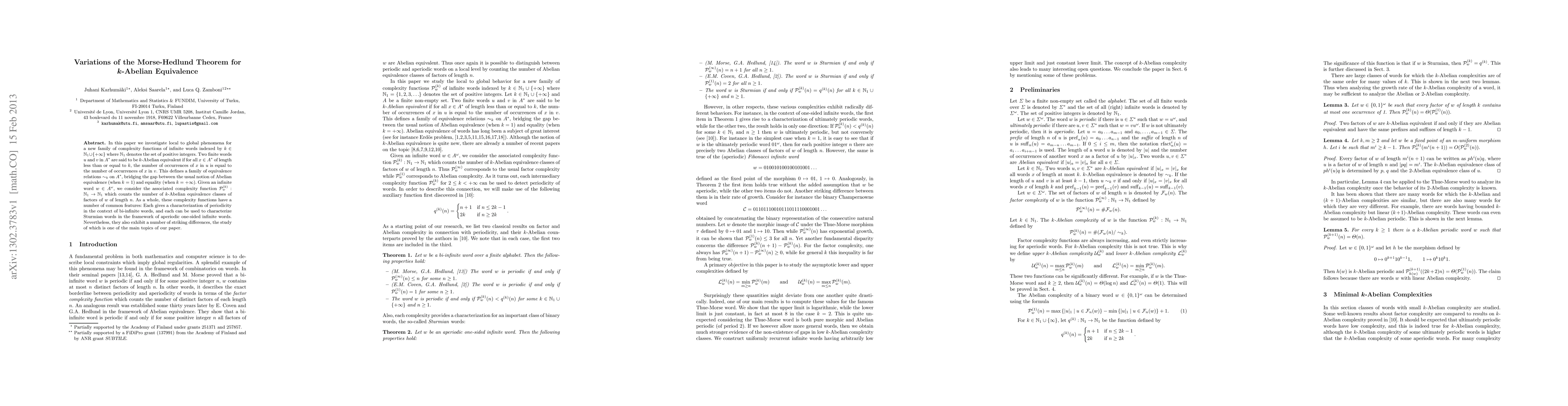 In this paper we investigate local to global phenomena for a new family of complexity functions of infinite words indexed by $k \in \Ni \cup \{+\infty\}$ where $\Ni$ denotes the set of positive integers. Two finite words $u$ and $v$ in $A^*$ are said to be $k$-Abelian equivalent if for all $x \in A^*$ of length less than or equal to $k$, the number of occurrences of $x$ in $u$ is equal to the number of occurrences of $x$ in $v$. This defines a family of equivalence relations $\sim_k$ on $A^*$, bridging the gap between the usual notion of Abelian equivalence (when $k = 1$) and equality (when $k = +\infty$). Given an infinite word $w \in A^\omega$, we consider the associated complexity function $\mathcal P^{(k)}_w : \Ni \rightarrow \Ni$ which counts the number of $k$-Abelian equivalence classes of factors of $w$ of length $n$. As a whole, these complexity functions have a number of common features: Each gives a characterization of periodicity in the context of bi-infinite words, and each can be used to characterize Sturmian words in the framework of aperiodic one-sided infinite words. Nevertheless, they also exhibit a number of striking differences, the study of which is one of the main topics of our paper.