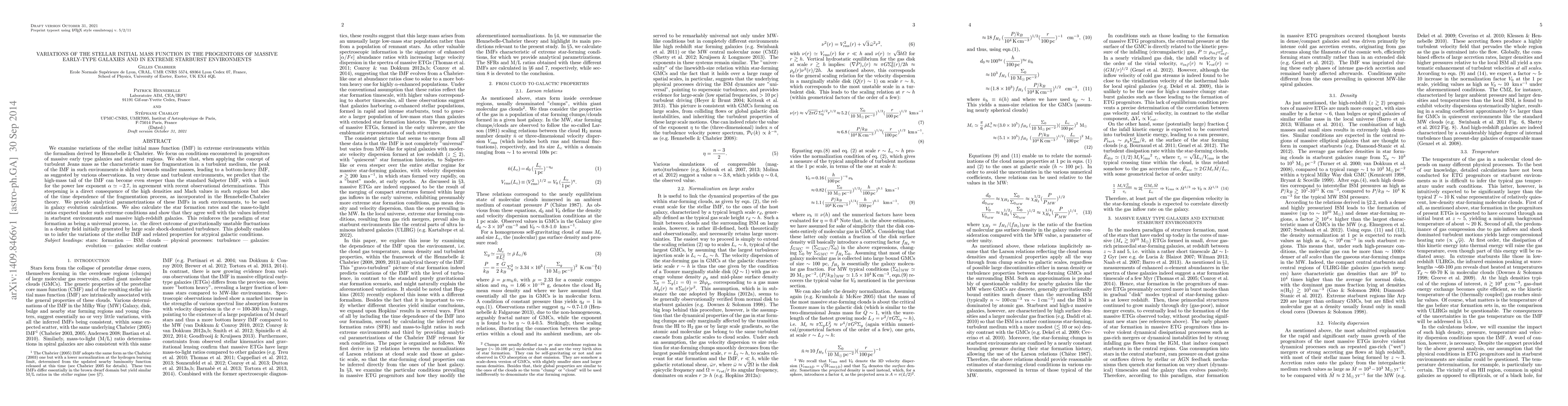 We examine variations of the stellar initial mass function (IMF) in extreme environments within the formalism derived by Hennebelle \& Chabrier. We focus on conditions encountered in progenitors of massive early type galaxies and starburst regions. We show that, when applying the concept of turbulent Jeans mass as the characteristic mass for fragmentation in a turbulent medium, instead of the standard thermal Jeans mass for purely gravitational fragmentation, the peak of the IMF in such environments is shifted towards smaller masses, leading to a bottom-heavy IMF, as suggested by various observations. In very dense and turbulent environments, we predict that the high-mass tail of the IMF can become even steeper than the standard Salpeter IMF, with a limit for the power law exponent $\alpha\simeq -2.7$, in agreement with recent observational determinations. This steepening is a direct consequence of the high densities and Mach values in such regions but also of the time dependence of the fragmentation process, as incorporated in the Hennebelle-Chabrier theory. We provide analytical parametrizations of these IMFs in such environments, to be used in galaxy evolution calculations. We also calculate the star formation rates and the mass-to-light ratios expected under such extreme conditions and show that they agree well with the values inferred in starburst environments and massive high-redshift galaxies. This reinforces the paradigm of star formation as being a universal process, i.e. the direct outcome of gravitationally unstable fluctuations in a density field initially generated by large scale shock-dominated turbulence. This globally enables us to infer the variations of the stellar IMF and related properties for atypical galactic conditions.