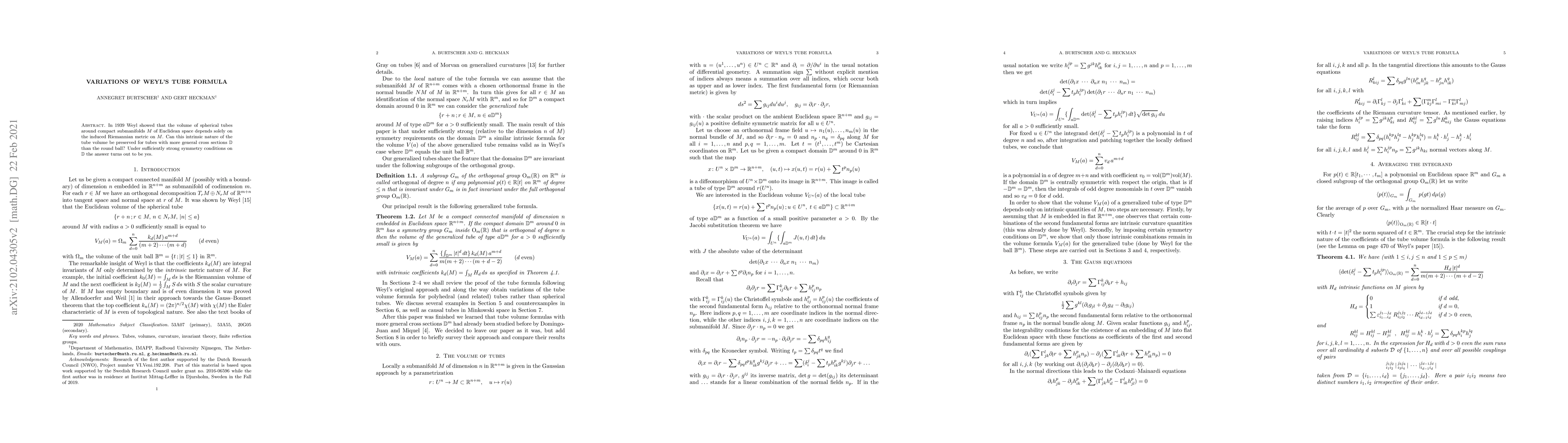 In 1939 Weyl showed that the volume of spherical tubes around compact submanifolds M of Euclidean space depends solely on the induced Riemannian metric on M. Can this intrinsic nature of the tube volume be preserved for tubes with more general cross sections D than the round ball? Under sufficiently strong symmetry conditions on D the answer turns out to be yes.