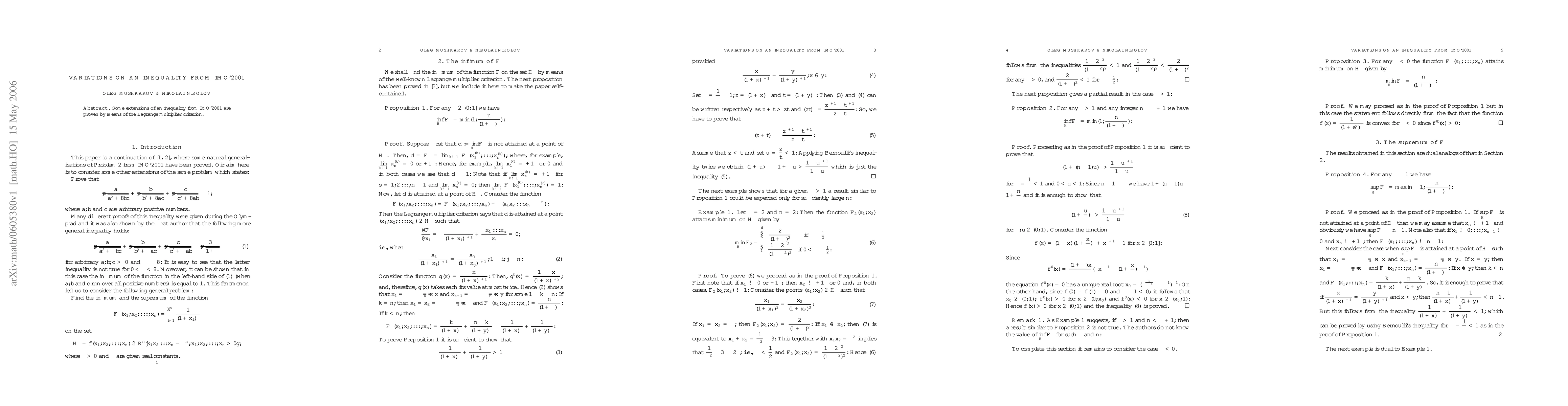 Some extensions of an inequality from IMO'2001 are proven by means of the