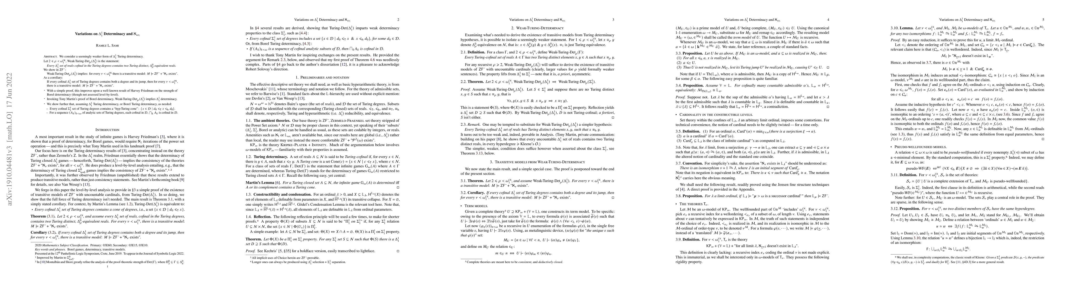 We consider a seemingly weaker form of $\Delta^1_1$ Turing determinacy. Let $2 \leq \rho < \omega_1^{\textrm{CK}}$, $\textrm{Weak-Turing-Det}_\rho (\Delta^1_1)$ is the statement: Every $\Delta^1_1$ set of reals cofinal in the Turing degrees contains two Turing distinct, $\Delta^0_\rho$-equivalent reals. We show in $\textrm{ZF}^-$: $\textrm{Weak-Turing-Det}_\rho (\Delta^1_1)$ implies: for every $\nu < \omega_1^{\textrm{CK}}$ there is a transitive model: $M \models \textrm{ZF}^- + \aleph_\nu \textrm{ exists}$. As a corollary: If every cofinal $\Delta^1_1$ set of Turing degrees contains both a degree and its jump, then for every $\nu < \omega_1^{\textrm{CK}}$, there is a transitive model: $M \models \textrm{ZF}^- + \aleph_\nu \textrm{ exists}$. -- With a simple proof, this improves upon a well-known result of Harvey Friedman on the strength of Borel determinacy (though not assessed level-by-level). -- Invoking Tony Martin's proof of Borel determinacy, $\textrm{Weak-Turing-Det}_\rho (\Delta^1_1)$ implies $\Delta^1_1$ determinacy. We show further that $\Delta^1_1$ determinacy imparts weak determinacy properties to the class $\Sigma^1_1$.