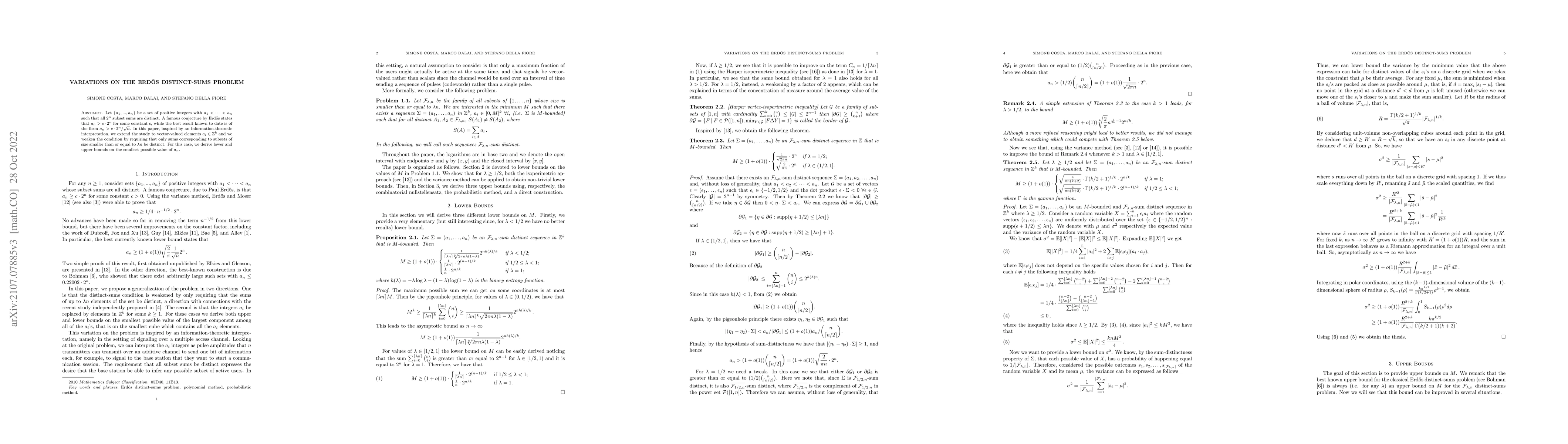 This paper investigates variations of the Erdős distinct-sums problem where only subset sums of sizes up to $\lambda n$ must be distinct, deriving improved lower and upper bounds for the largest element $a_n$ in such sets. The results refine the understanding of the original conjecture concerning the minimum size of $a_n$ for all subset sums to be distinct.