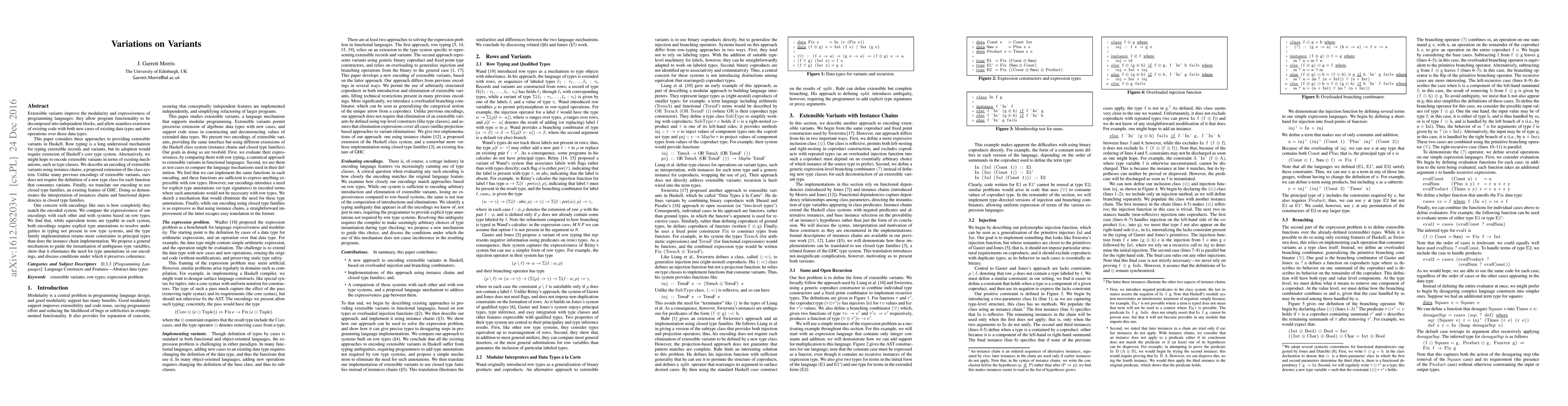 Researchers explored three approaches to providing extensible variants in Haskell, finding that one method using instance chains offers a balance between expressiveness and constraints, while requiring explicit type annotations to resolve ambiguities.