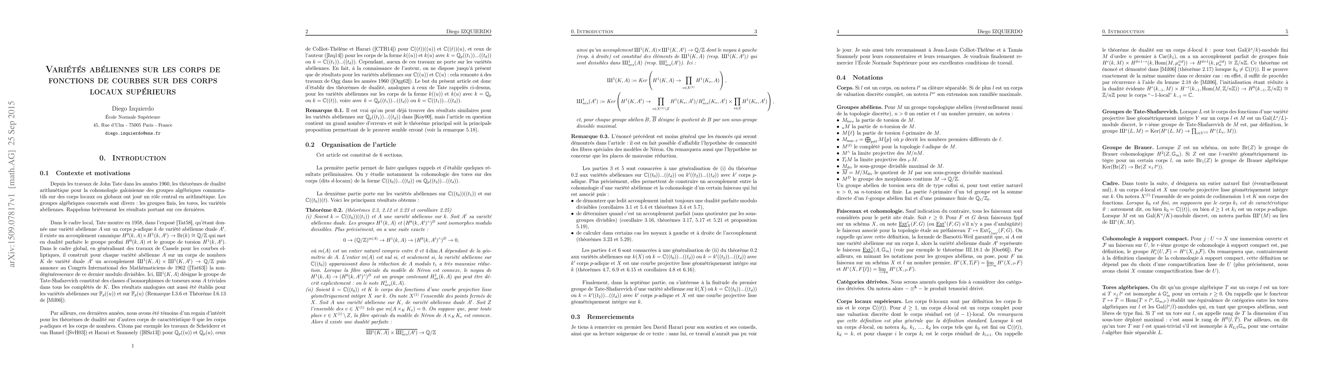 Let $k$ be a higher-dimensional local field and $X$ be a smooth projective geometrically integral curve over $k$. Let $K$ be the function field of $X$. We define Tate-Shafarevich groups of an abelian variety via cohomology classes locally trivial at each completion of $K$ coming from a closed point of $X$. We prove local duality theorems for abelian varieties over $k$, as well as global duality theorems for Tate-Shafarevich groups of abelian varieties over $K$. Soient $k$ un corps local sup\'erieur et $X$ une courbe projective lisse g\'eom\'etriquement int\`egre de corps de fonctions $K$. On d\'efinit les groupes de Tate-Shafarevich d'une vari\'et\'e ab\'elienne en consid\'erant les classes de cohomologie qui deviennent triviales sur chaque compl\'et\'e de $K$ provenant d'un point ferm\'e de $X$. On \'etablit des th\'eor\`emes de dualit\'e locale pour les vari\'et\'es ab\'eliennes sur $k$, ainsi que des th\'eor\`emes de dualit\'e globale pour les groupes de Tate-Shafarevich des vari\'et\'es ab\'eliennes sur $K$.