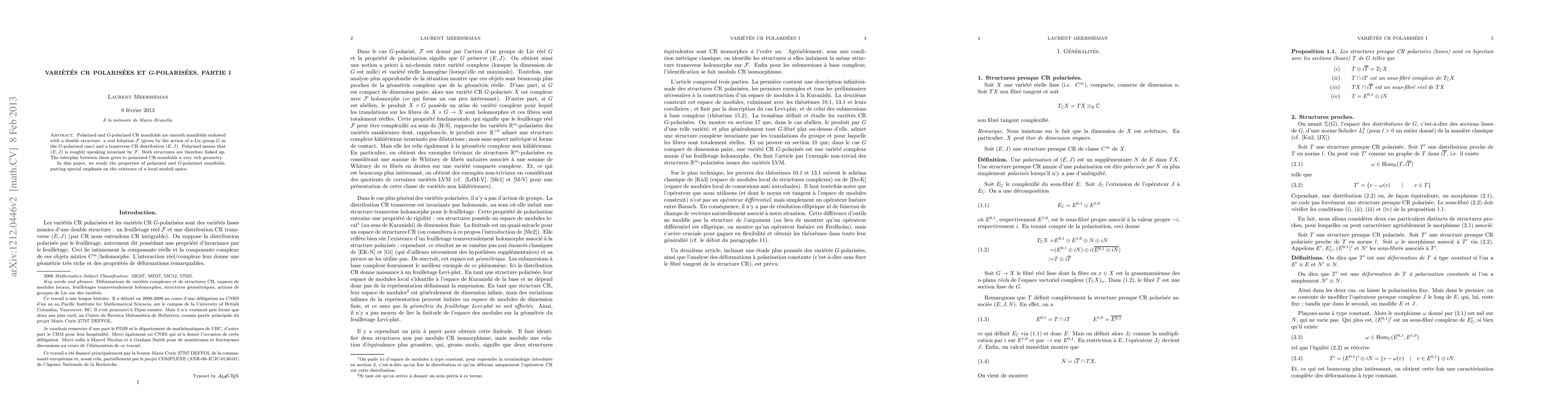 Polarized and $G$-polarized CR manifolds are smooth manifolds endowed with a double structure: a real foliation $\Cal F$ (given by the action of a Lie group $G$ in the $G$-polarized case) and a transverse CR distribution $(E,J)$. Polarized means that $(E,J)$ is roughly speaking invariant by $\Cal F$. Both structures are therefore linked up. The interplay between them gives to polarized CR-manifolds a very rich geometry. In this paper, we study the properties of polarized and $G$-polarized manifolds, putting special emphasis on their deformations.