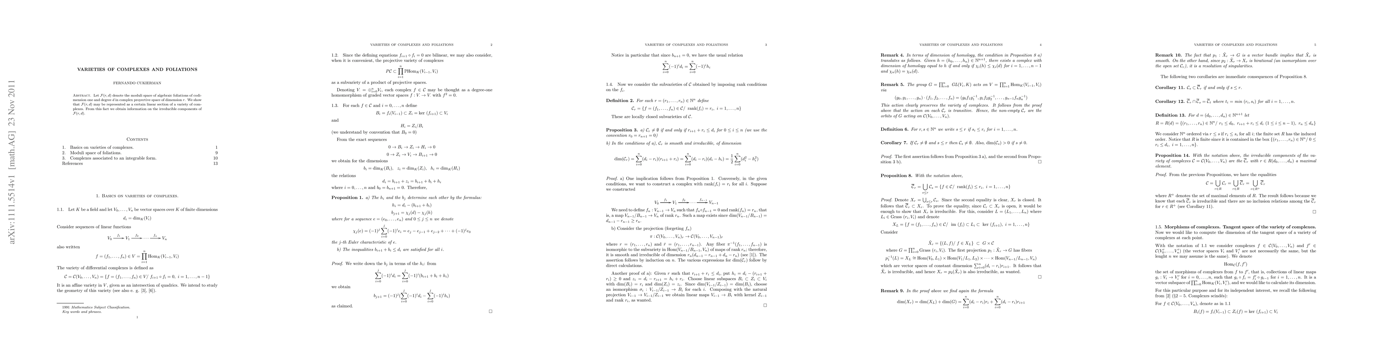Let $\mathcal F(r, d)$ denote the moduli space of algebraic foliations of codimension one and degree $d$ in complex proyective space of dimension $r$. We show that $\mathcal F(r, d)$ may be represented as a certain linear section of a variety of complexes. From this fact we obtain information on the irreducible components of $\mathcal F(r, d)$.