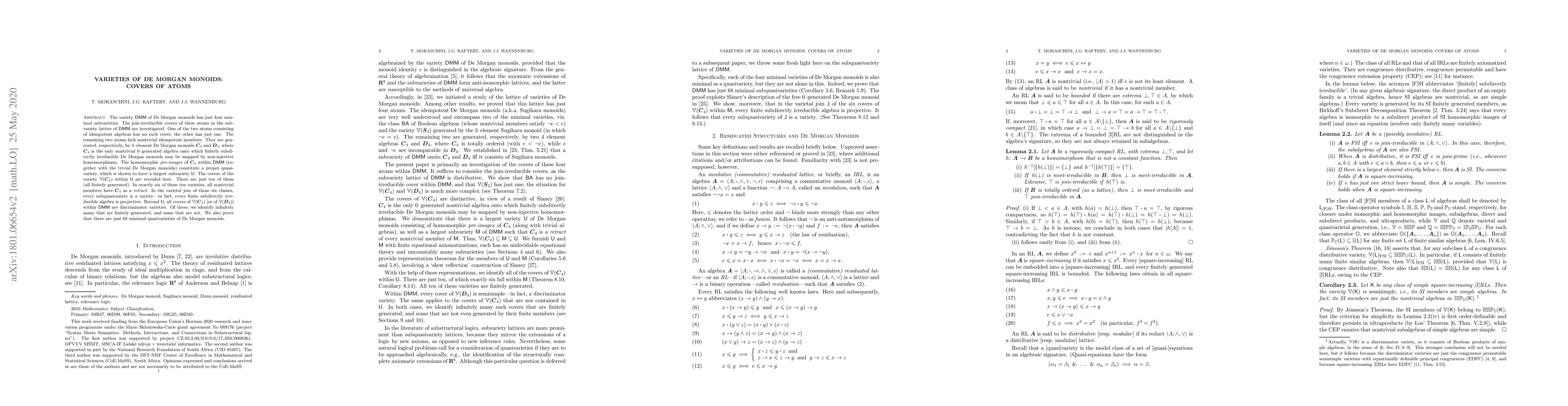 The research employs algebraic techniques, specifically focusing on De Morgan monoids and their covers of atoms, utilizing the subvariety lattice and properties of skew reflections in square-increasing RL-algebras.